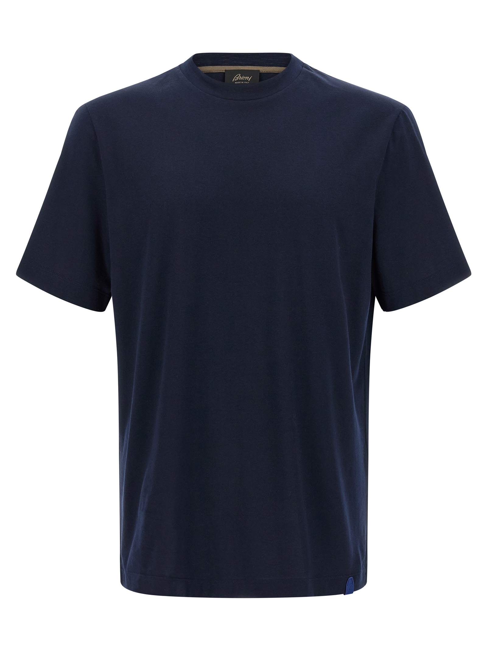 Cotton jersey T-shirt with front logo patch, crew neck, short sleeves, side slits.