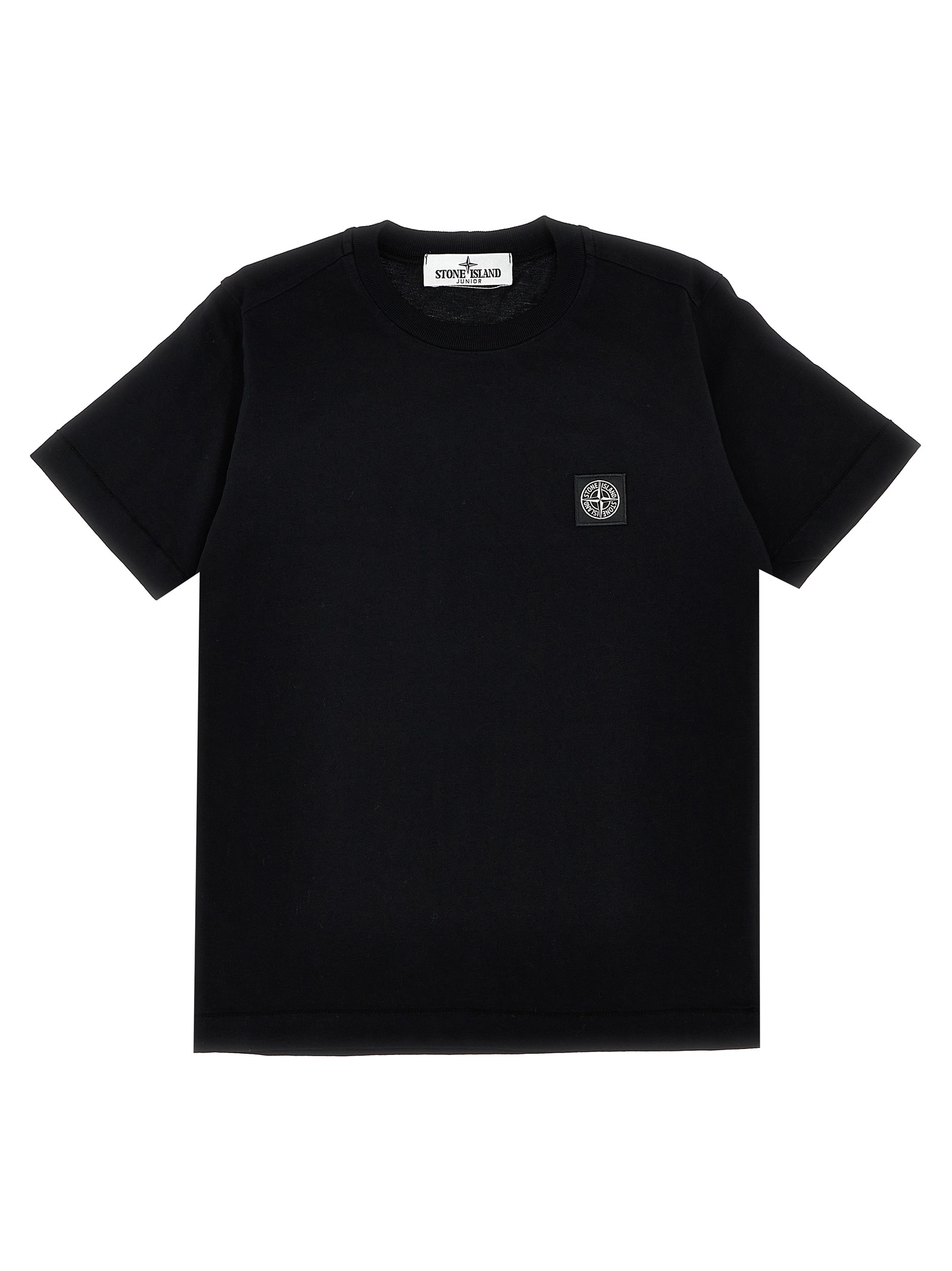 Cotton t-shirt with front logo patch, crew neck, short sleeves.