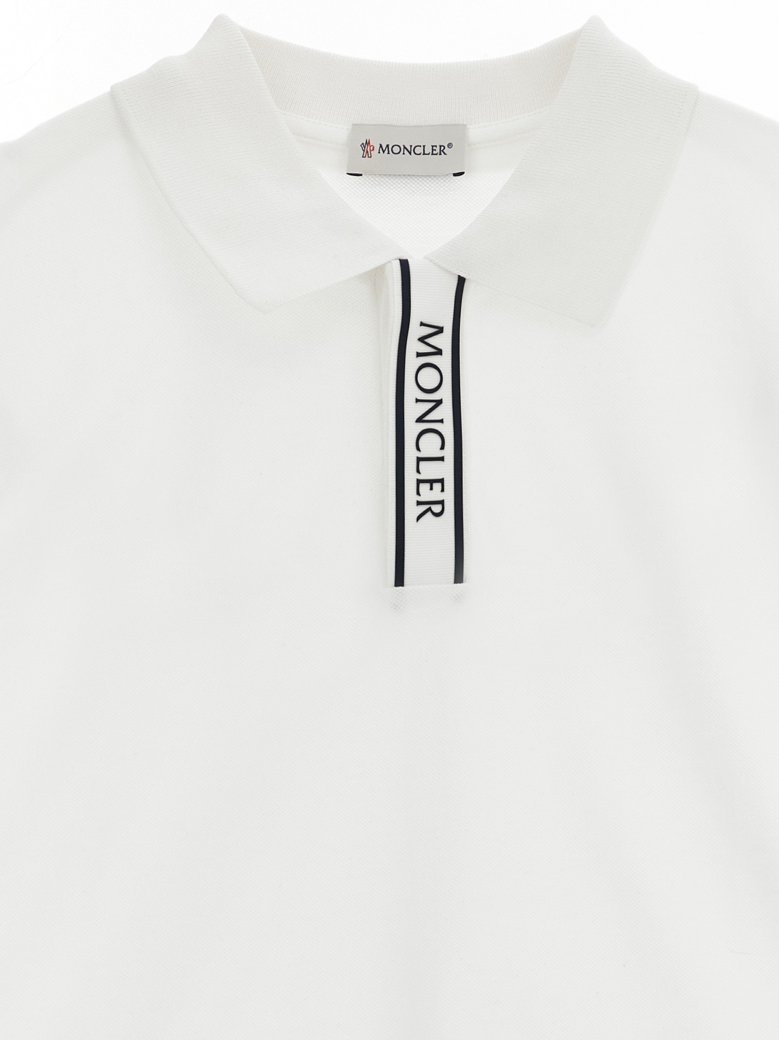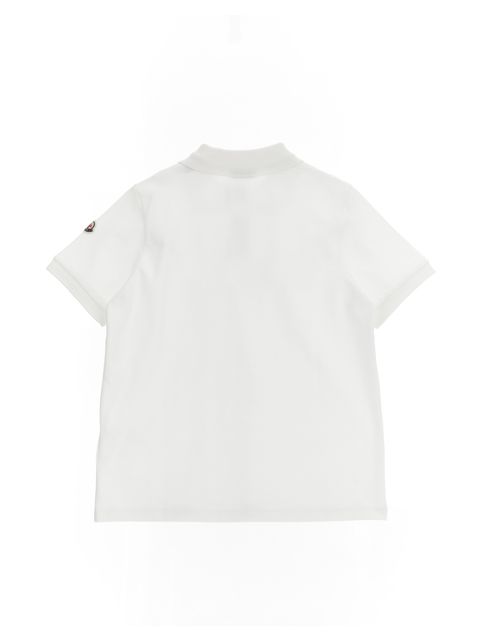 Cotton piquet polo shirt with collar and buttons concealed by grosgrain detail with silicone logo print, short cuffed sleeves and felt logo patch appliqué.