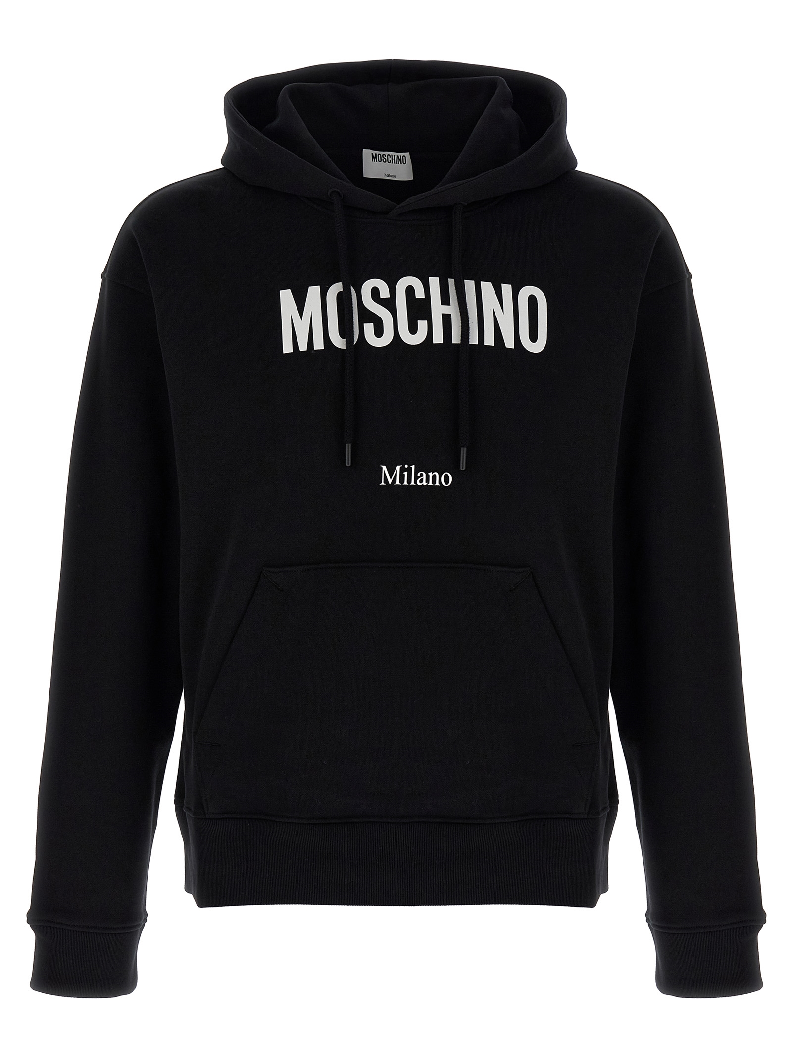 Hoodie with contrasting front logo print, front kangaroo pocket, long cuffed sleeves.