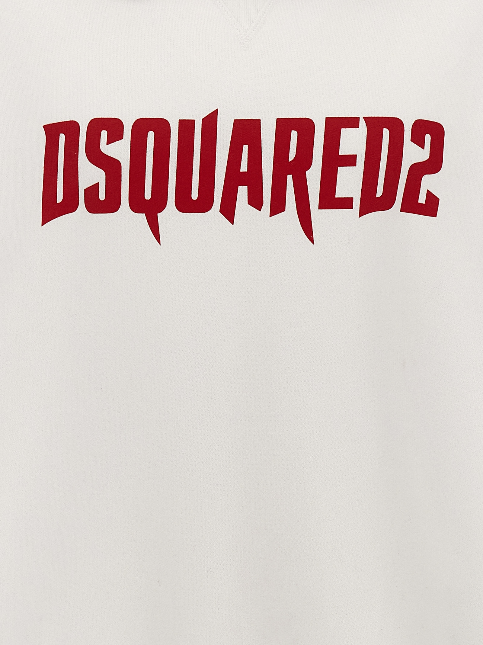 Cotton hoodie with front logo print, long cuffed sleeves.
