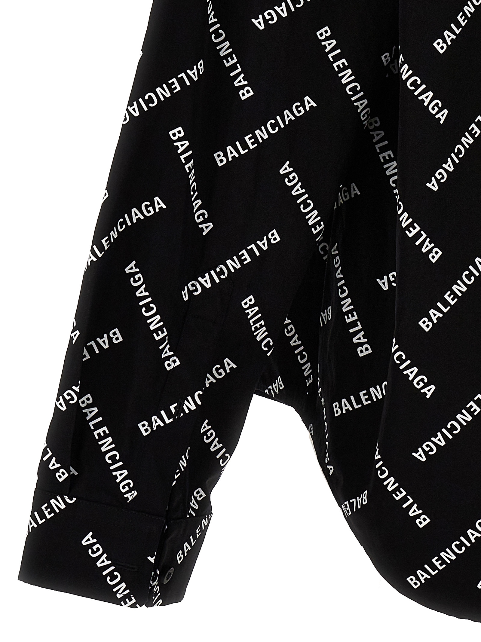 Cotton shirt with all-over logo print, front pocket, button closure, long cuffed sleeves.