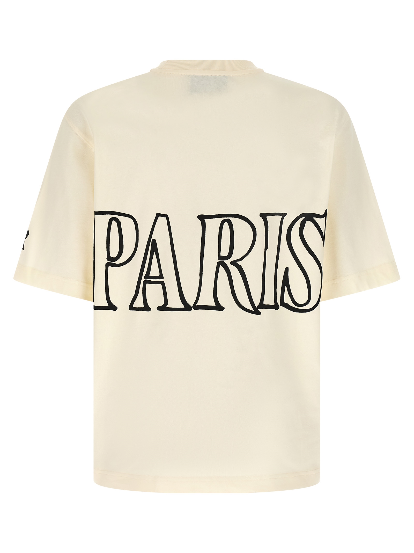 Cotton jersey T-shirt with logo print on the front and back, crew neck, short sleeves with dropped shoulders.