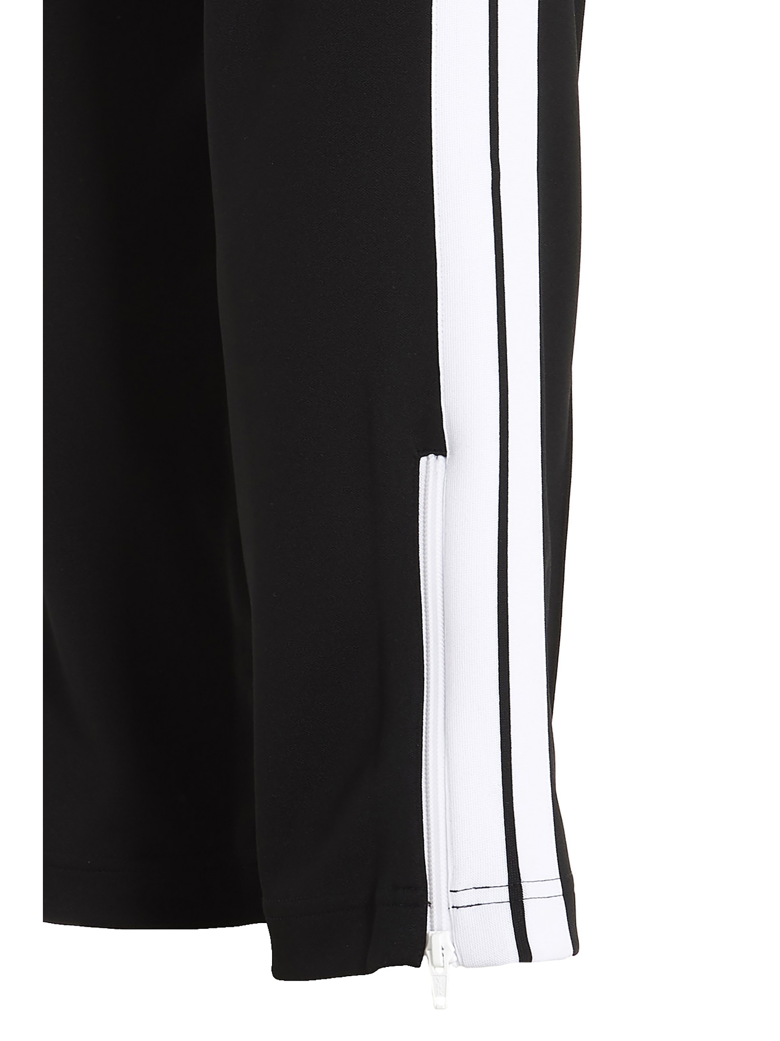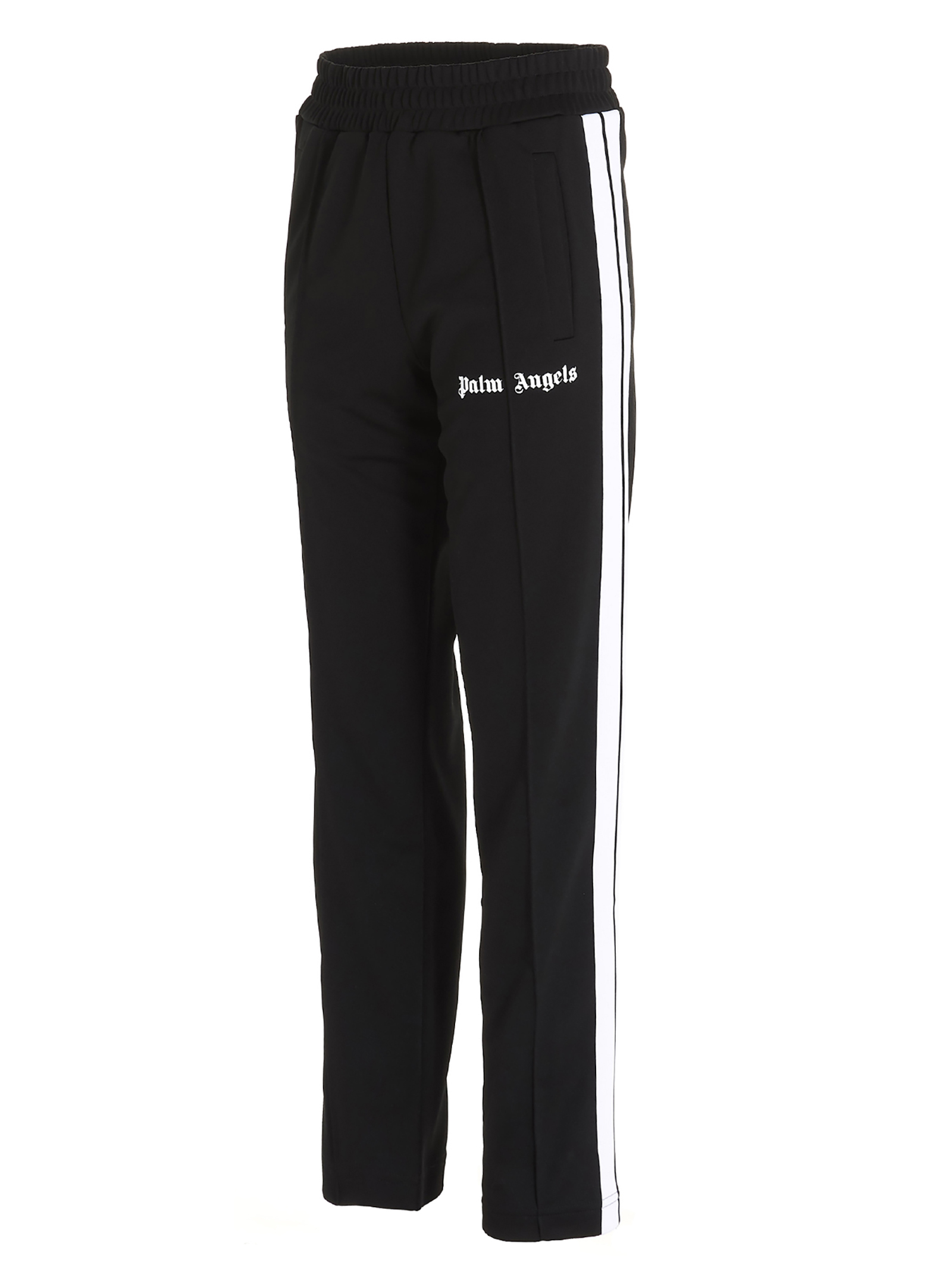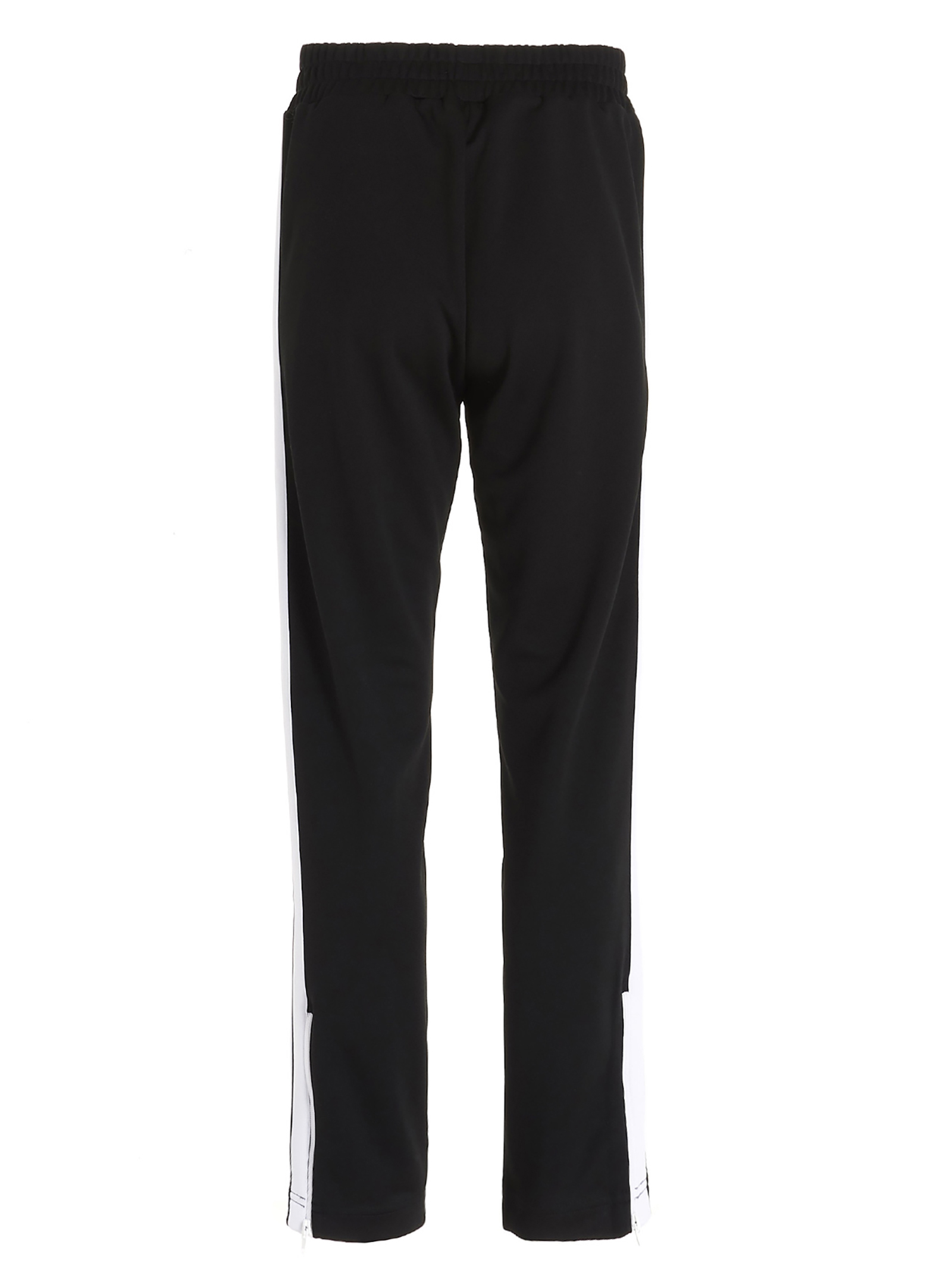 Track pants with an elastic waistband, a front logo print, contrasting side band detailing and a zip at the bottom.