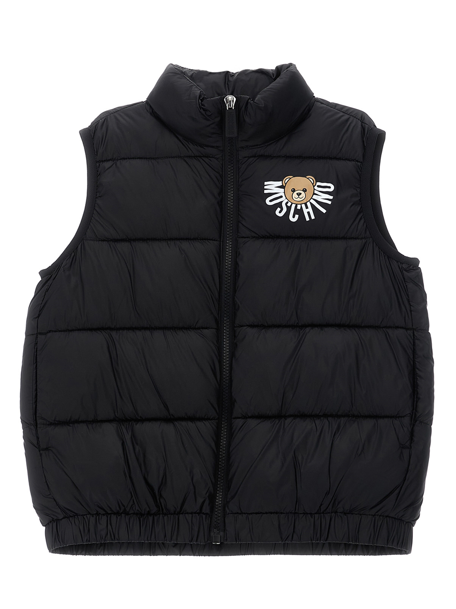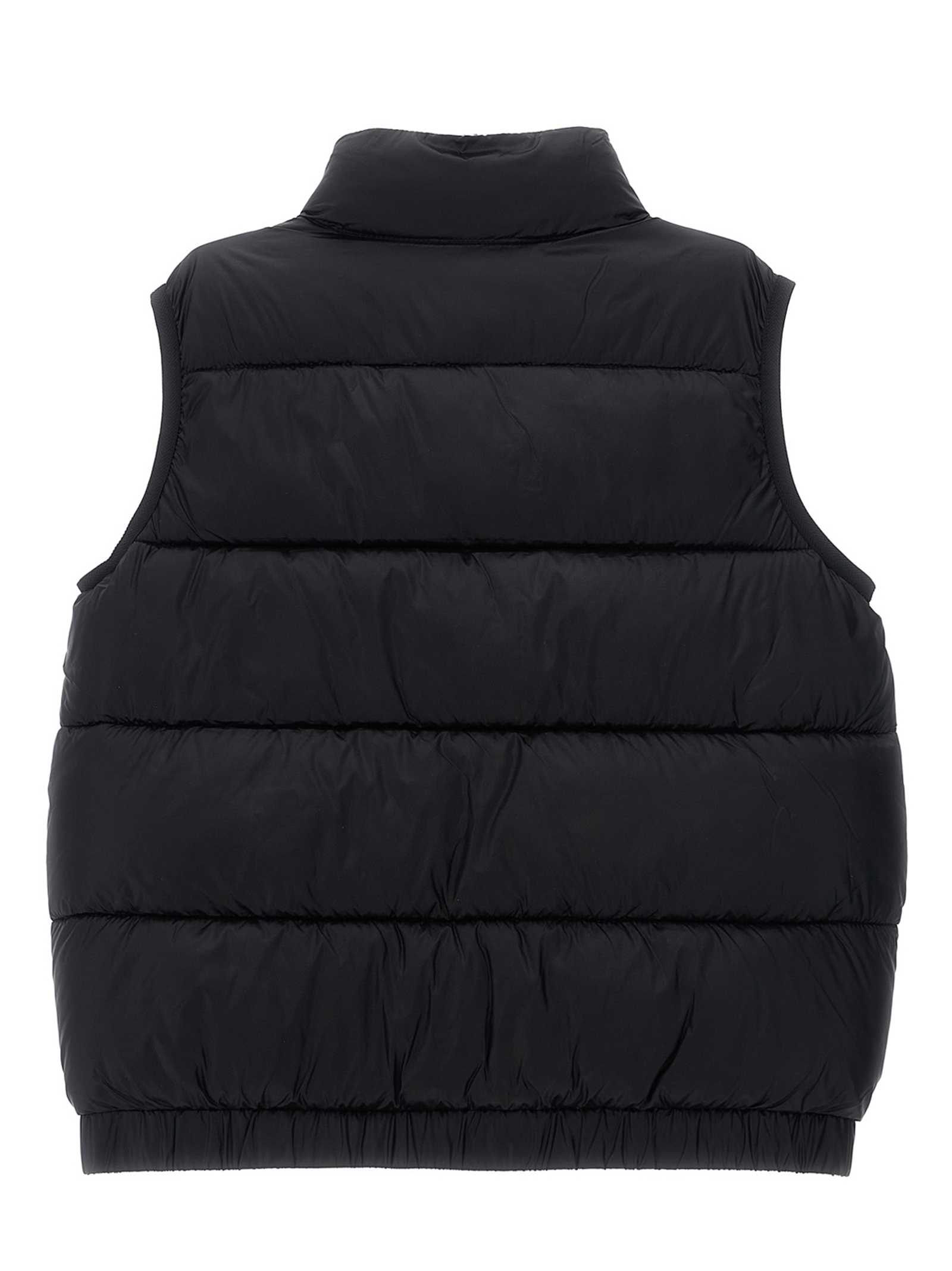 Quilted and padded vest in technical fabric, logo print and front zip closure, high neck, pockets, elastic on the hem.