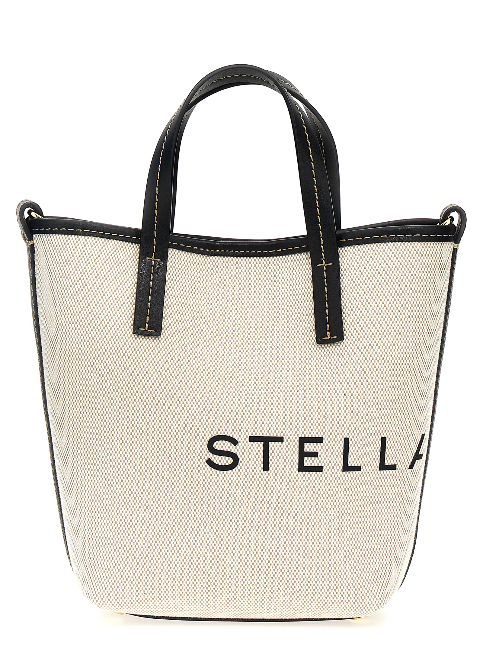 Canvas shopping bag with VEGEA fabric details, logo print, double handle, adjustable and removable shoulder strap.