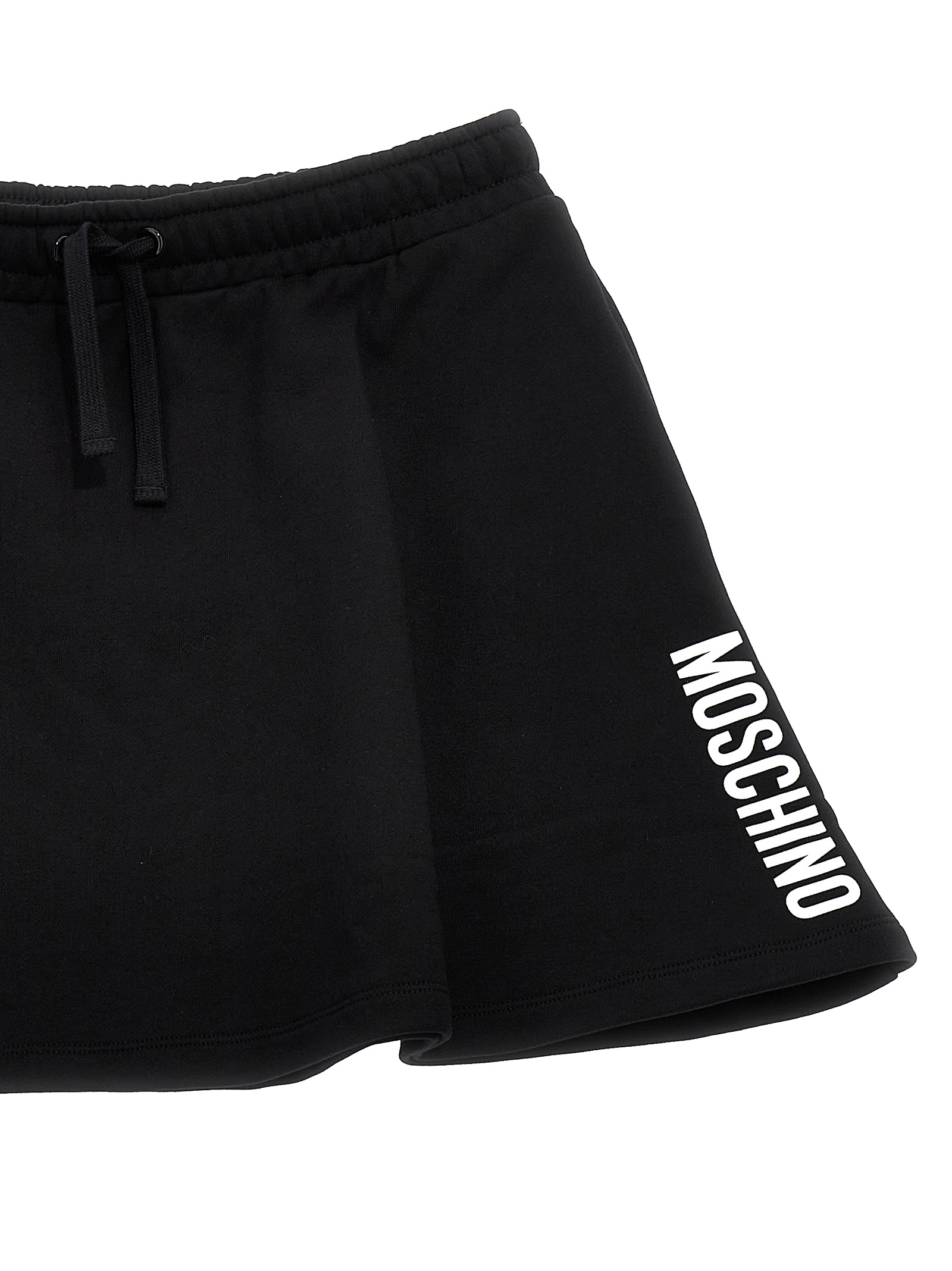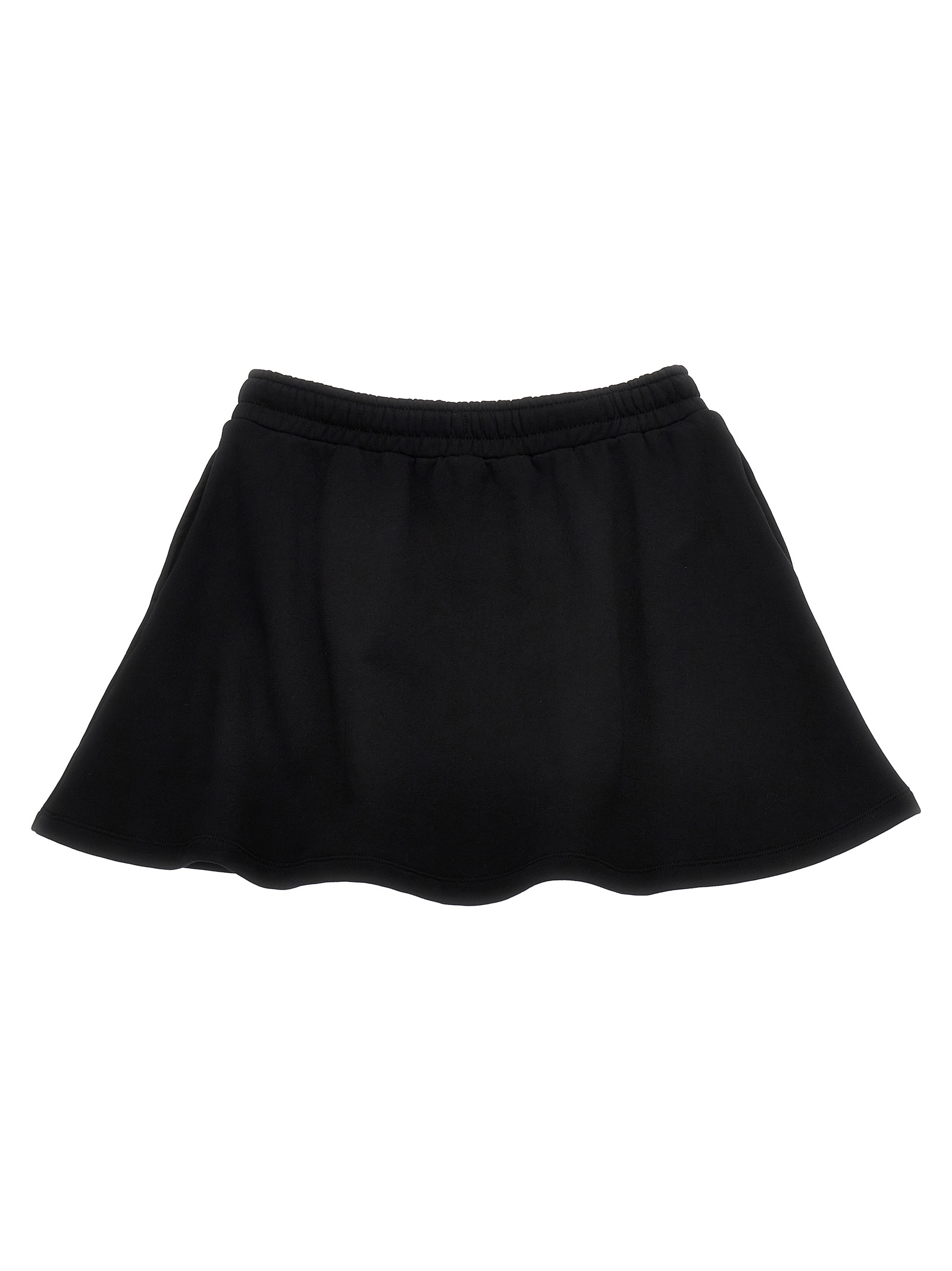 Brushed cotton skirt, front logo print, adjustable drawstring elastic waistband, pockets.