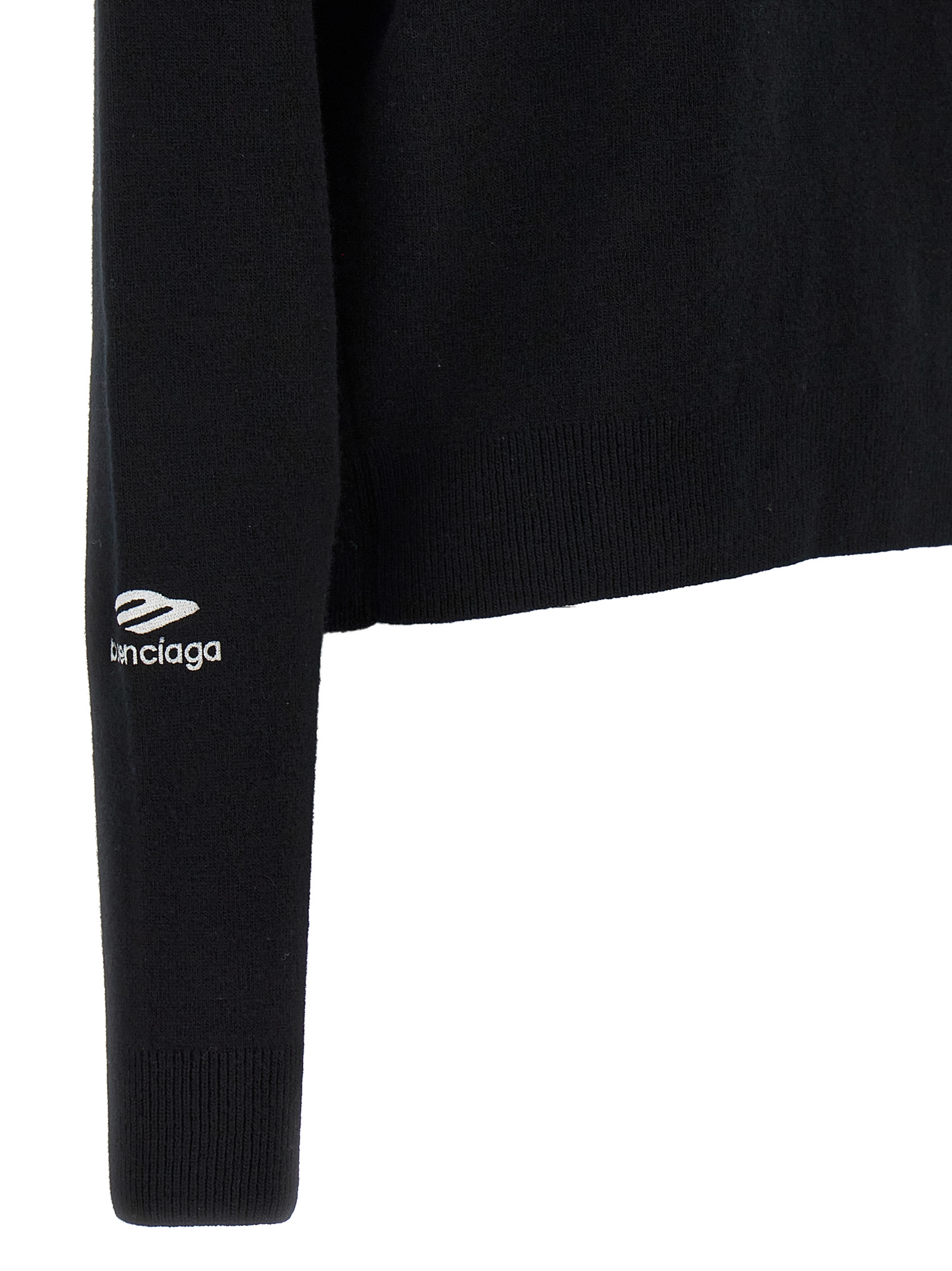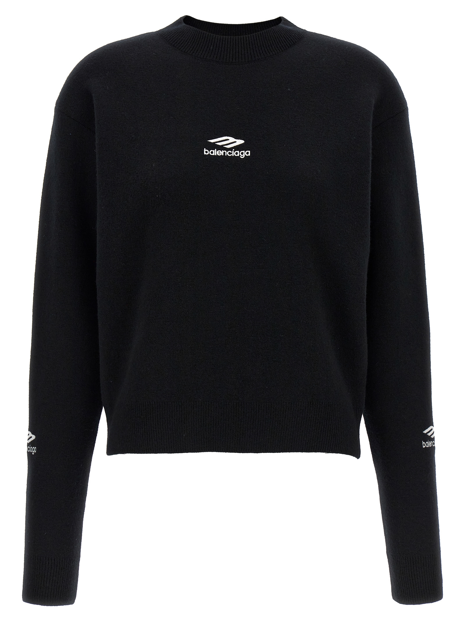 Wool blend sweater with logo embroidery on the front and sleeves, crew neck, long sleeves.