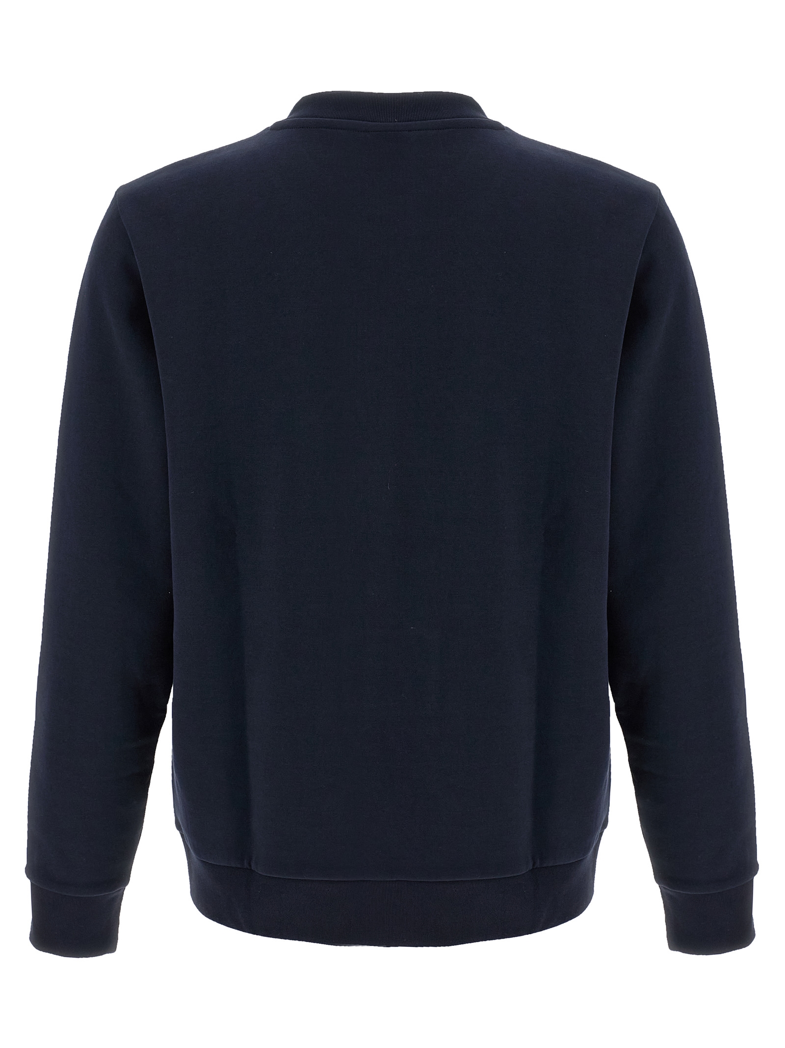 Slightly stretch cotton sweatshirt, crew neck, front metal logo patch, knit edging on the hem, long sleeves with cuffs.