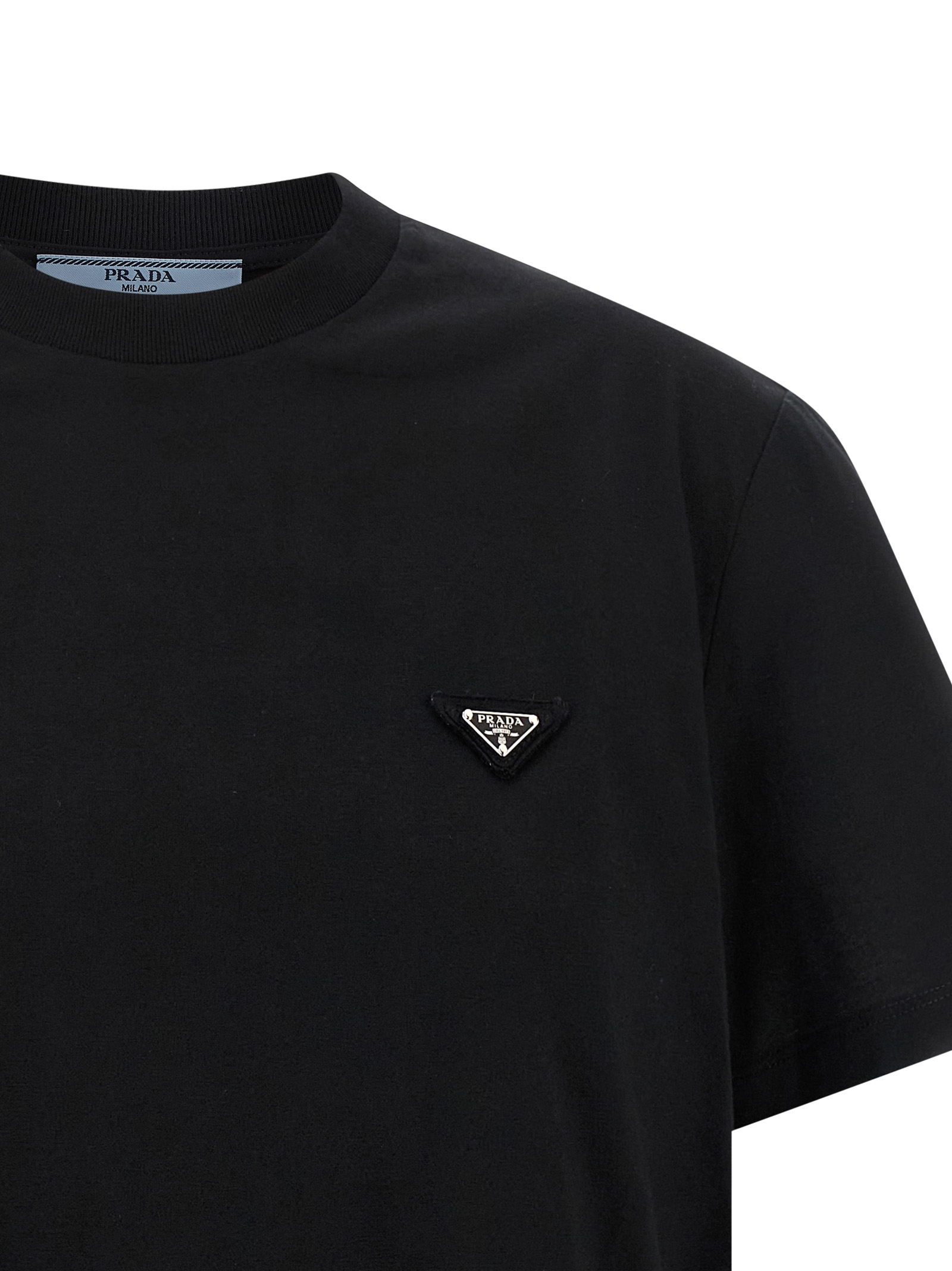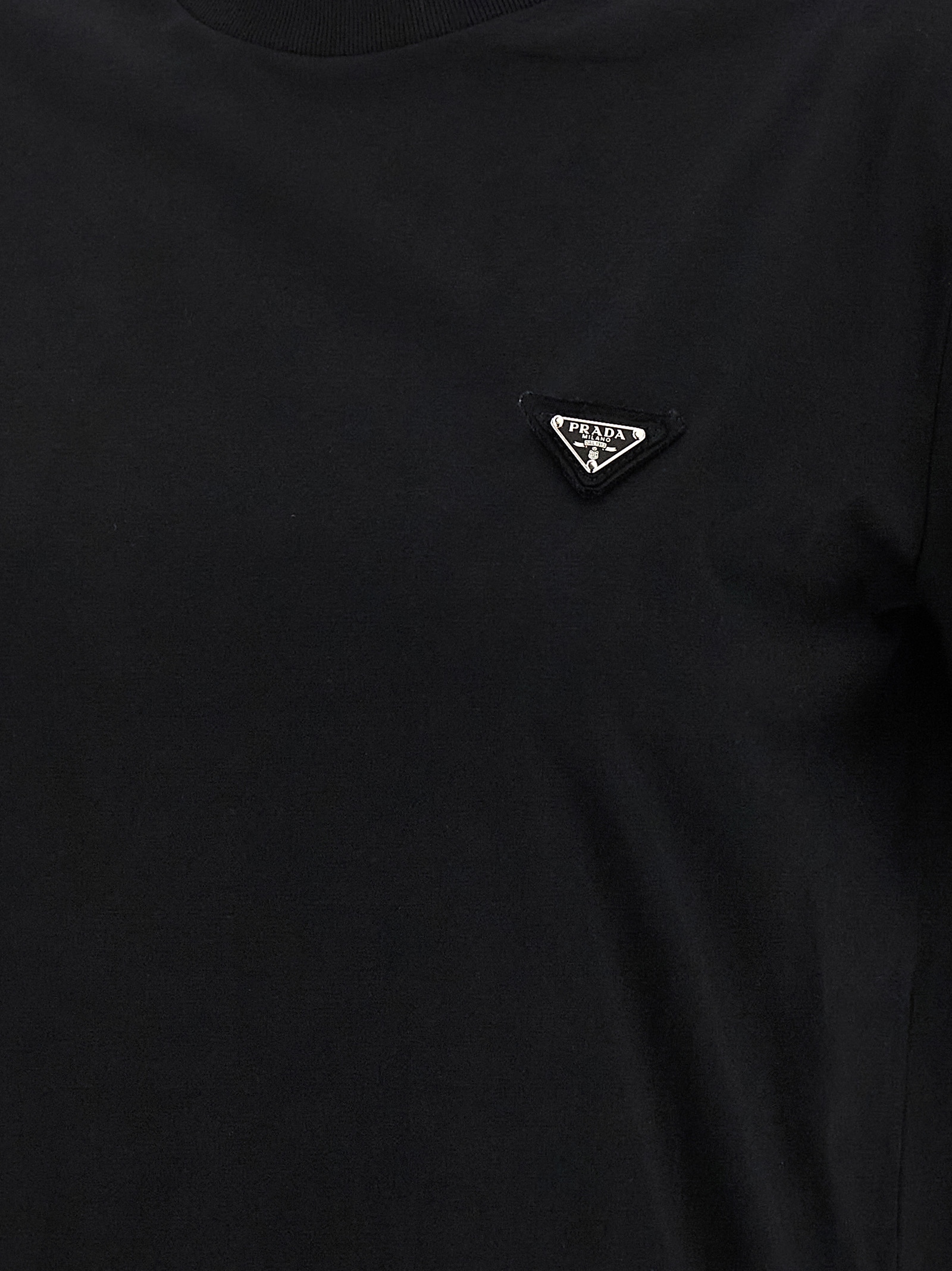 Used-effect cotton T-shirt, front enameled metal triangle logo, crew neck, short sleeves.