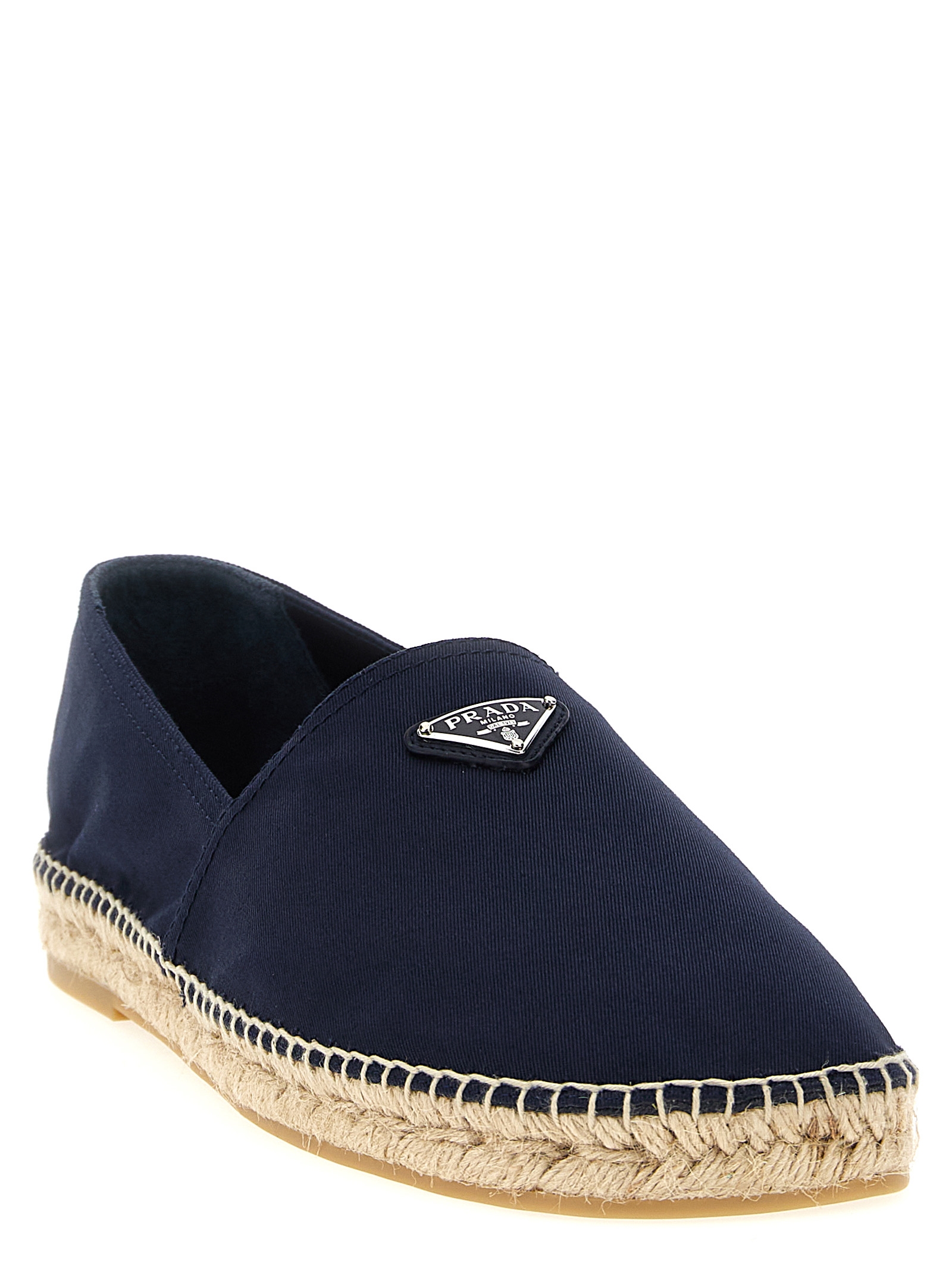 Cotton espadrilles, triangle logo in enameled metal on the front, rope midsole, rubber sole.