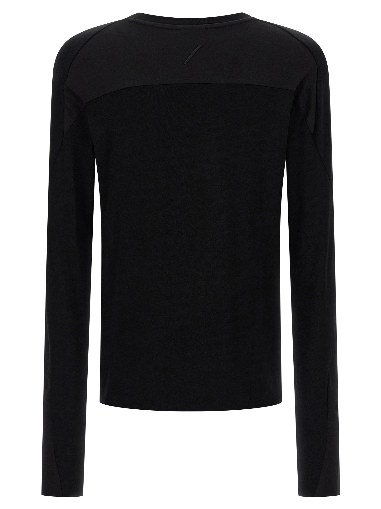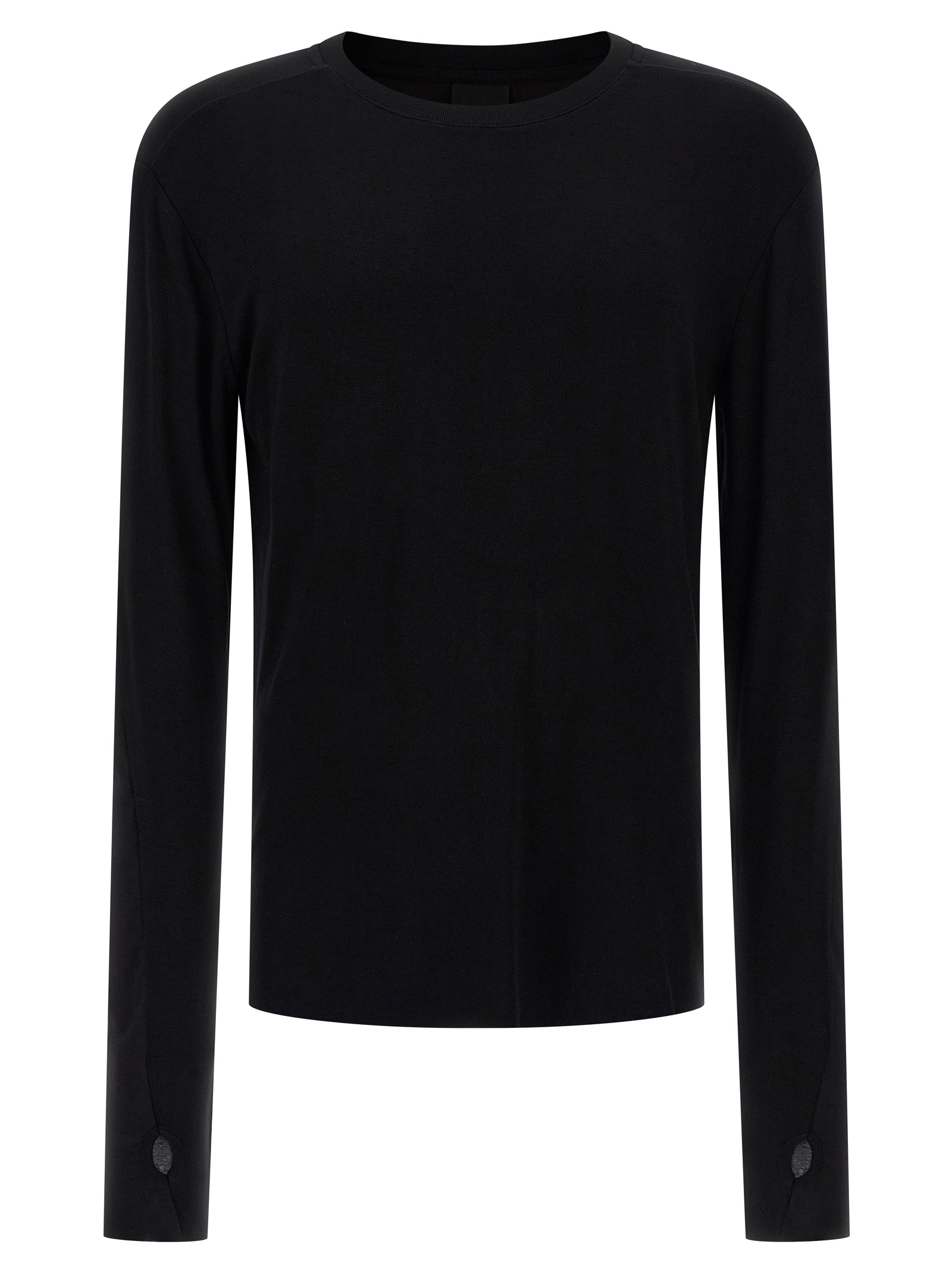 Jersey t-shirt, crew neck, raw cut on the hem, long sleeves.