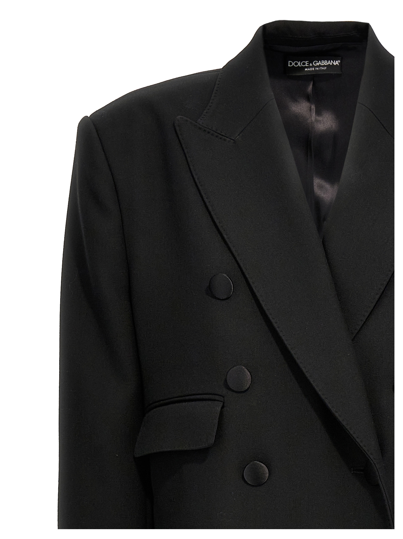 Long tuxedo coat in double wool gabardine, spear lapels, double-breasted style with button closure, long sleeves and back martingale.