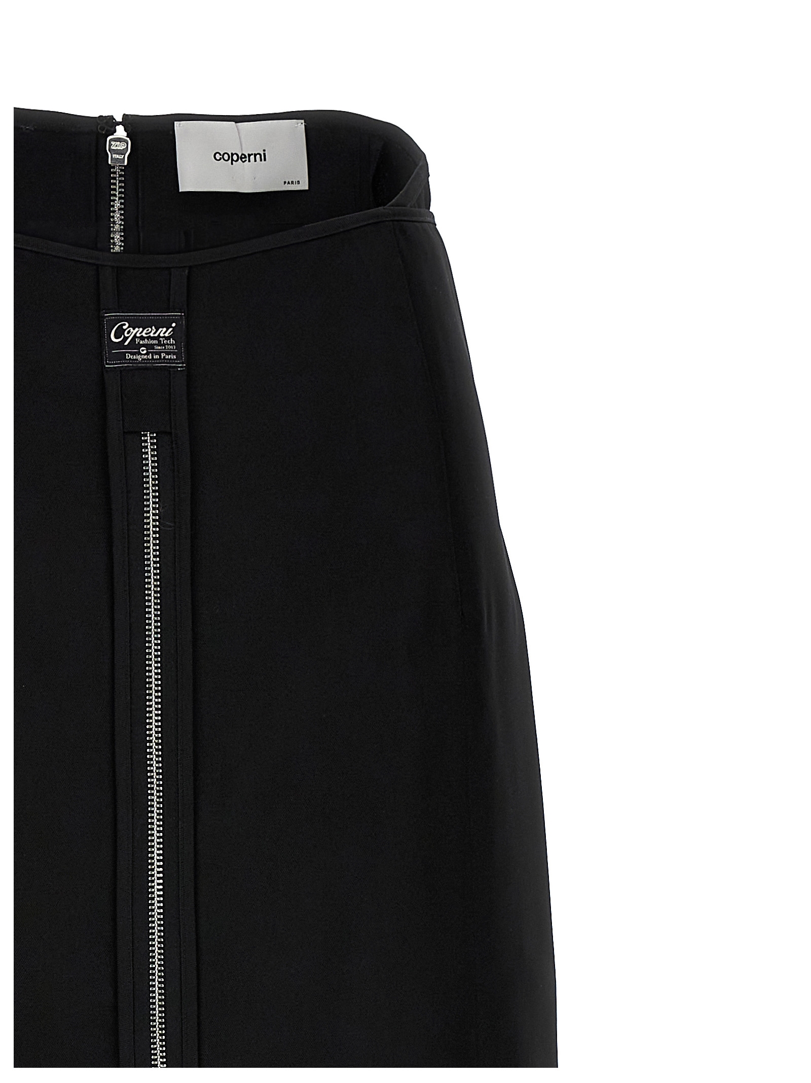 Asymmetrical ‘Long Zip’ skirt in recycled fabric, front and back zip, side slits.