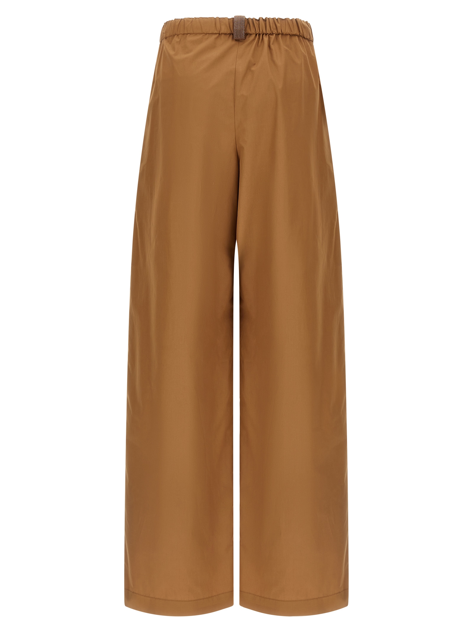 Cotton poplin pants, wide and straight leg, elastic waistband, pockets, diamond detail on the back.