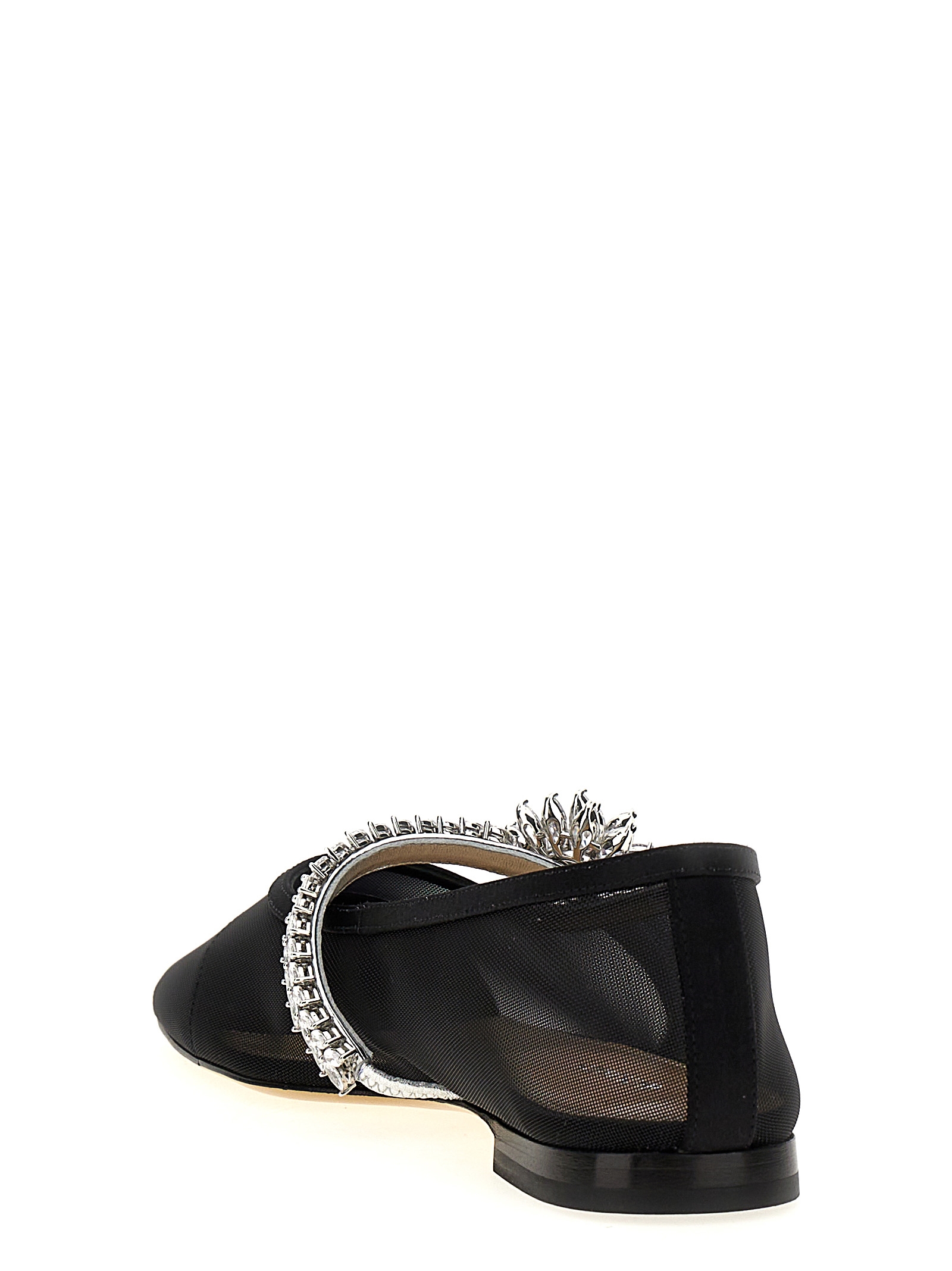 ‘Lotus’ ballet flats in semi-transparent mesh, strap with crystal application, leather insole.