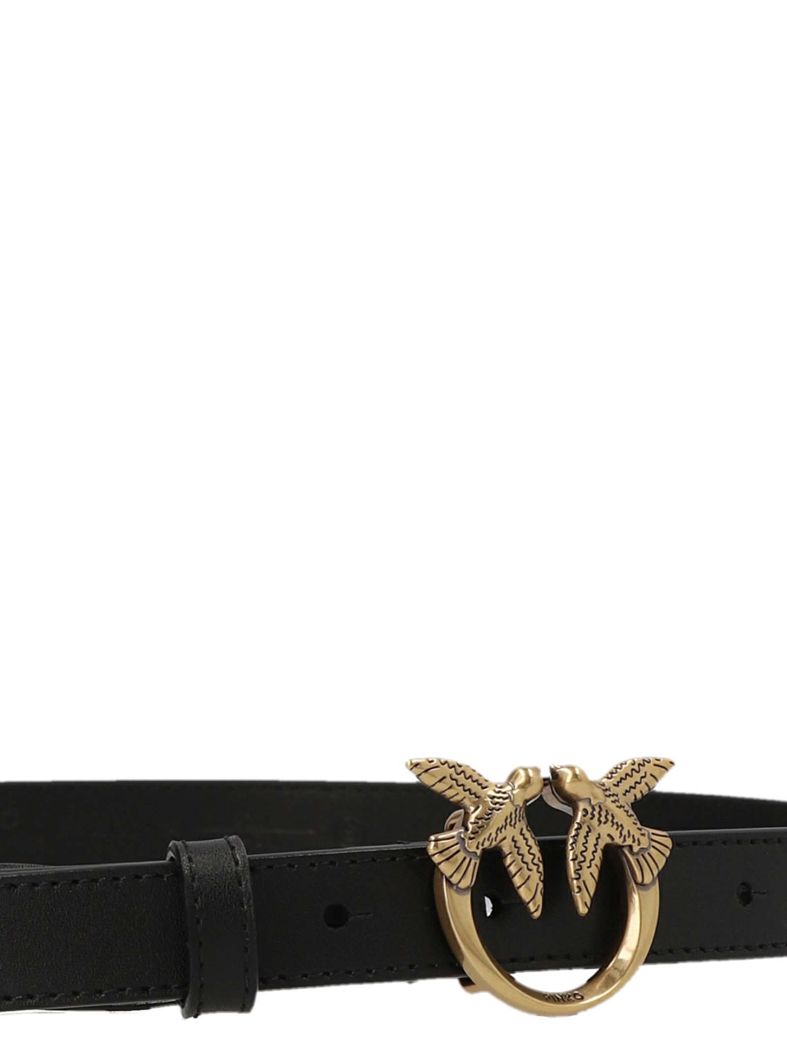 ‘Love Berry’ belt in silk-touch leather with metallic ‘Love Birds Diamond Cut’ buckle.