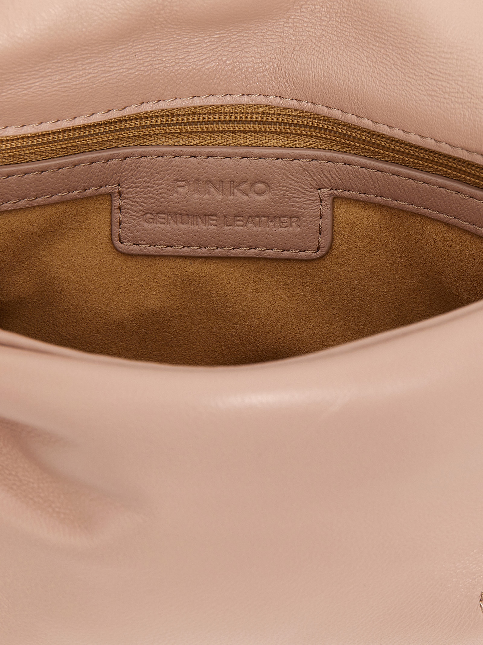 Love click baby puff’ matelassé leather crossbody bag with metal hardware, a flap closure with logo.