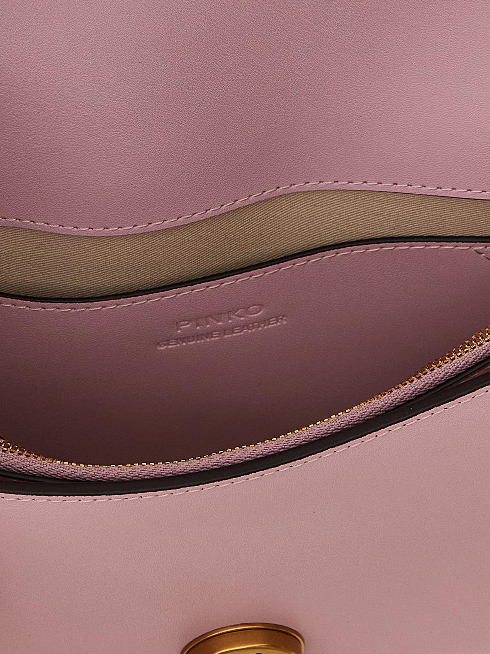 ‘Love One Mini’ leather crossbody bag, interlocking flap closure with front metal logo appliqué, chain shoulder strap with removable leather protection.