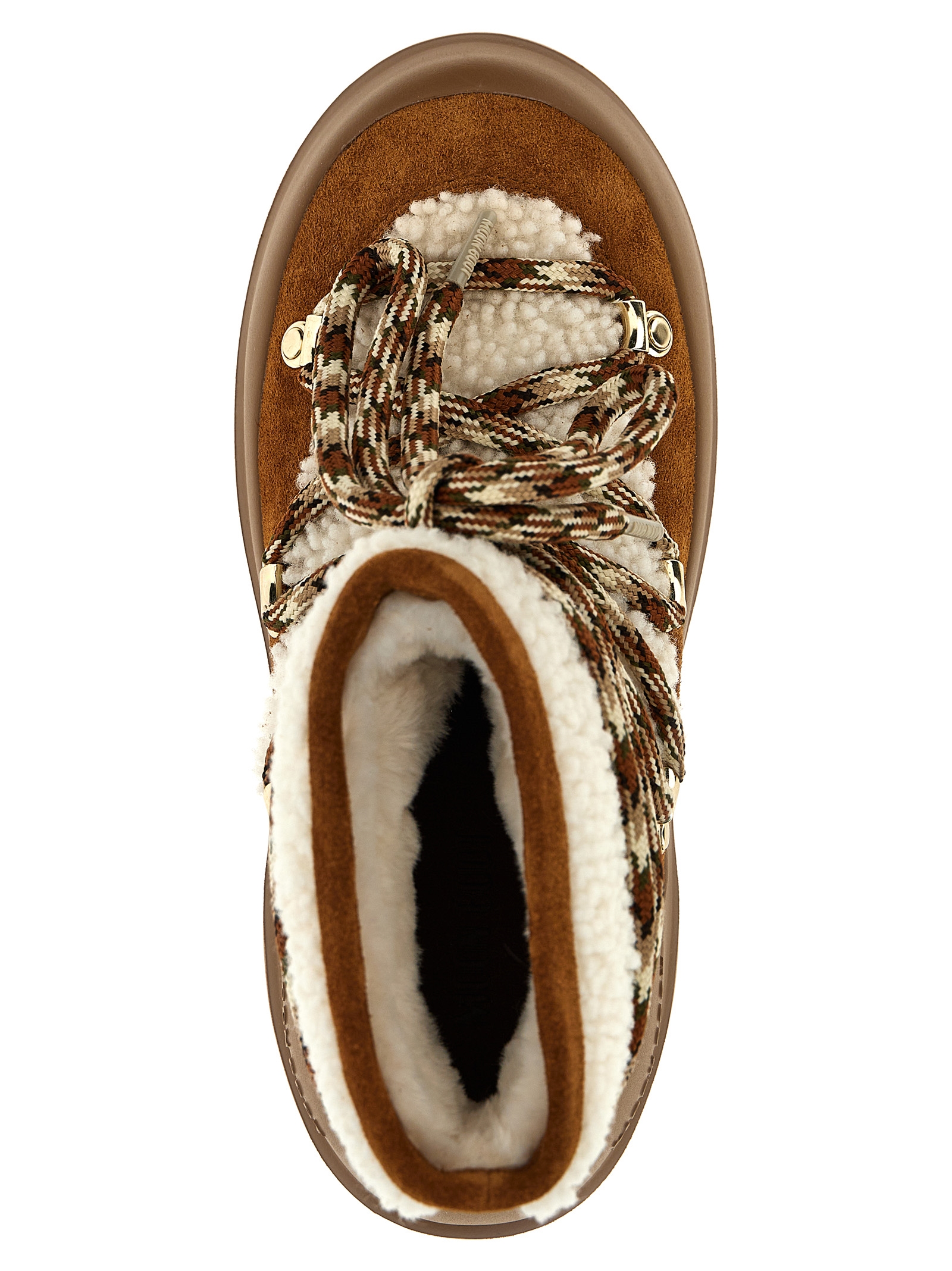 ‘Luna’ suede and shearling ankle boots, fur-lined interior, lace-up closure, non-slip rubber sole.