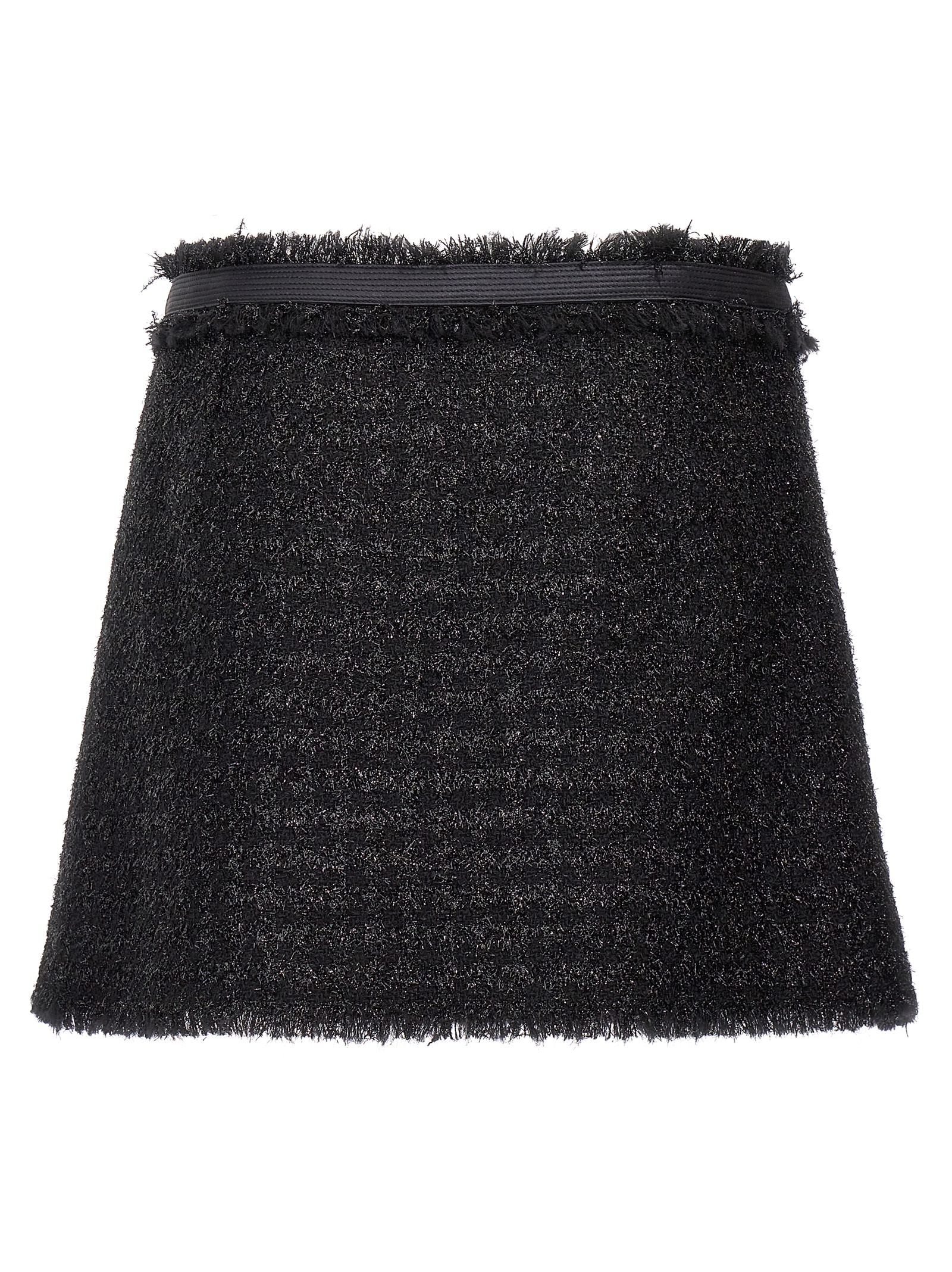 Lurex wool blend skirt with Medusa button wallet closure.