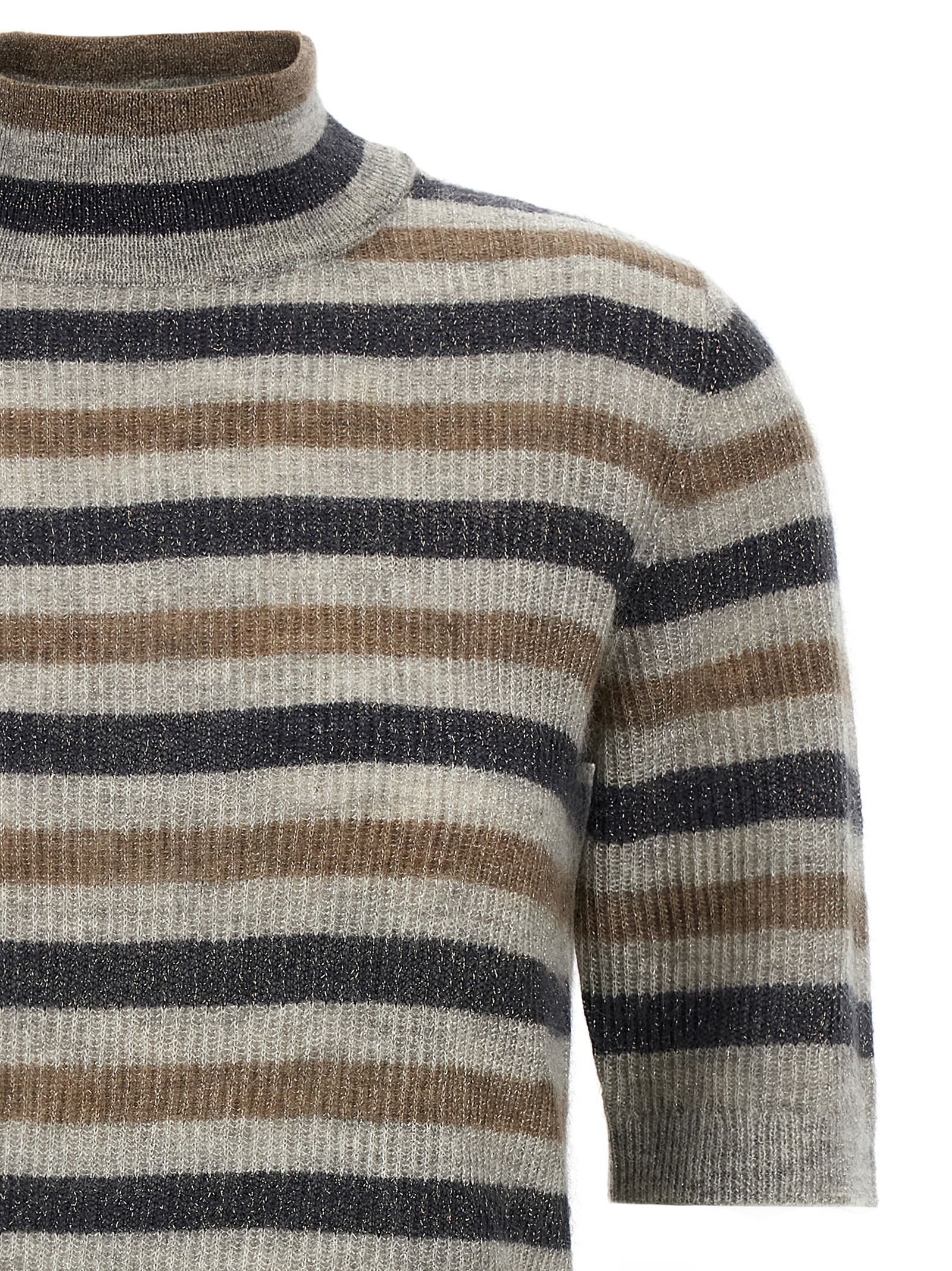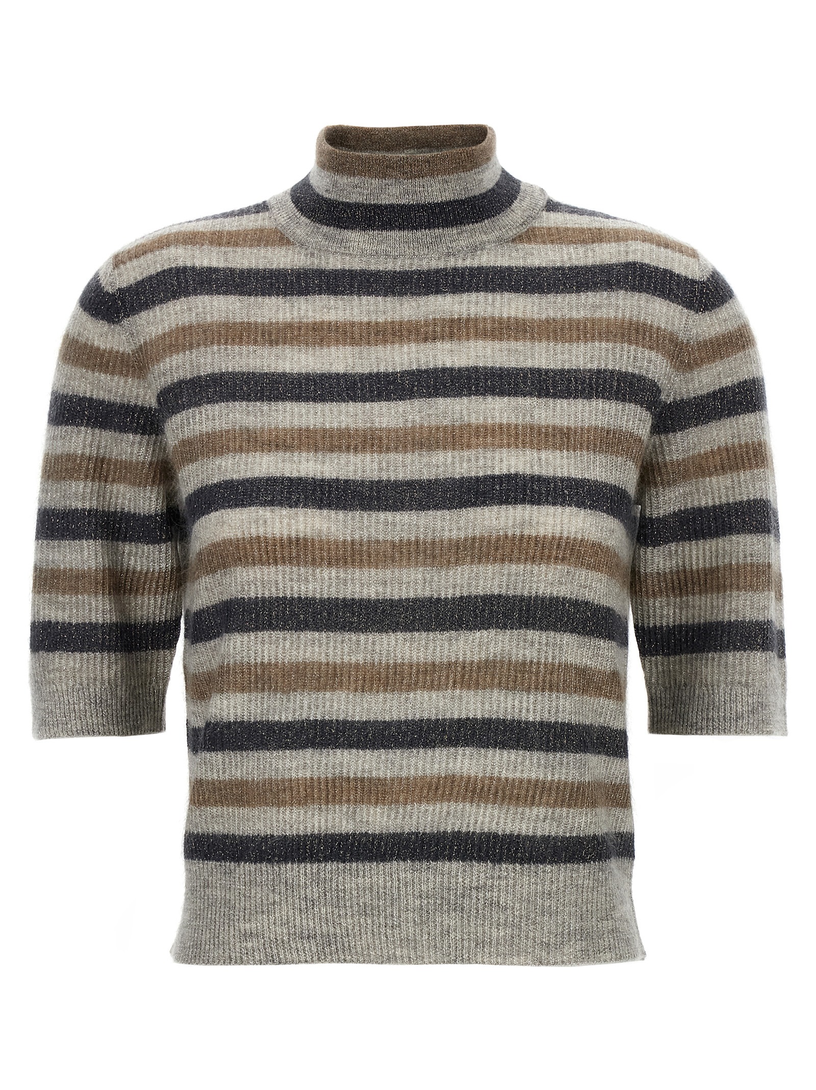Striped wool blend sweater with lurex threads, crop model, high neck, short sleeves.