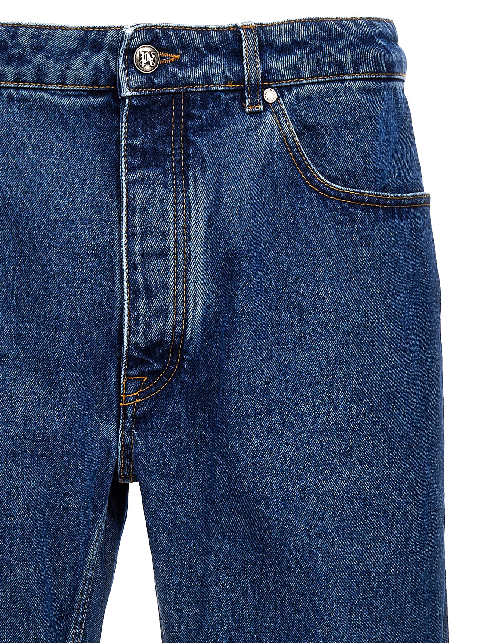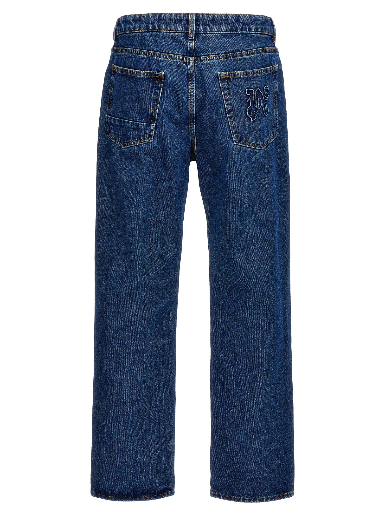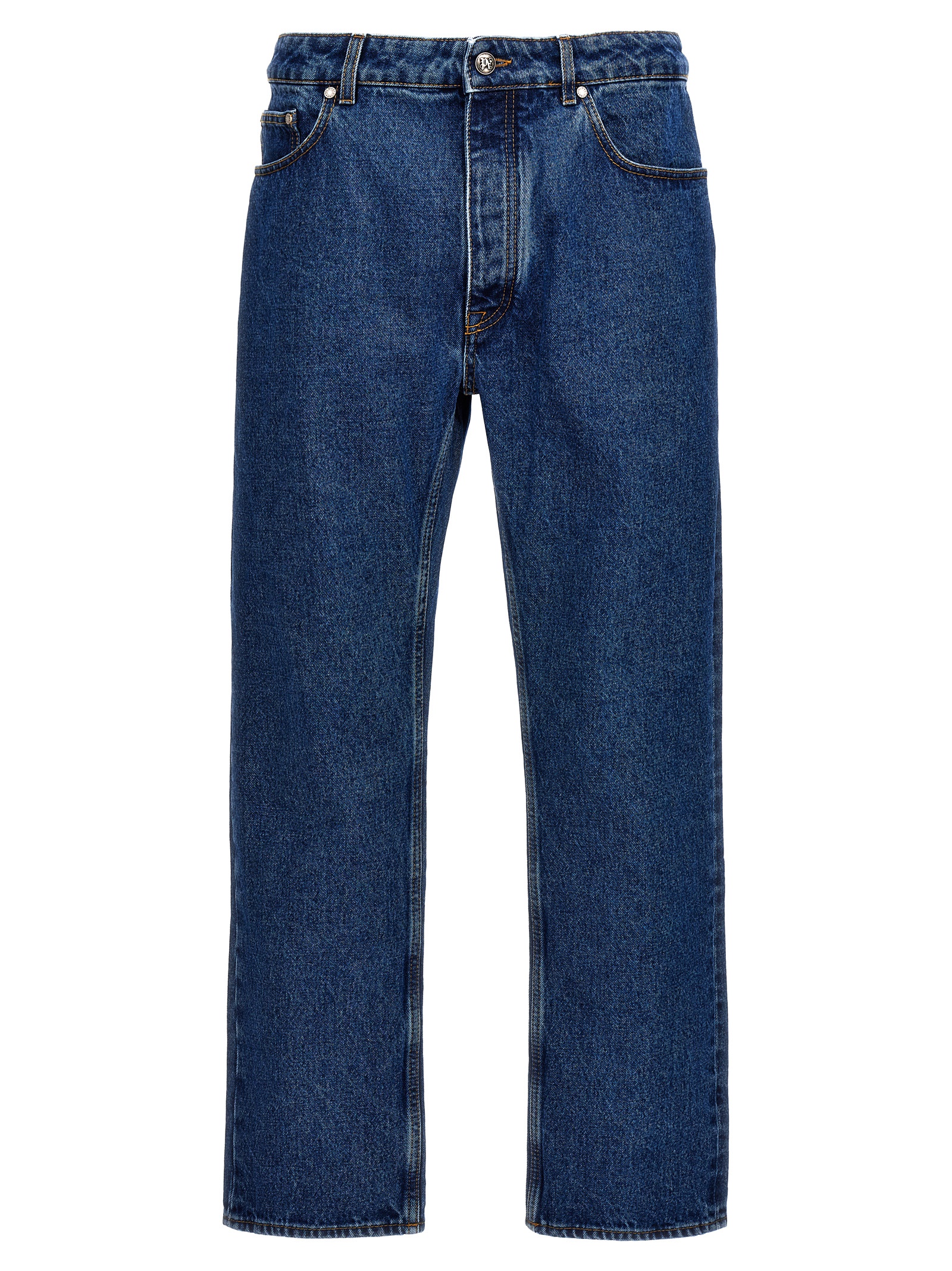 ‘LW Monogram’ cotton denim jeans with button closure, five pockets, embossed logo on the back.