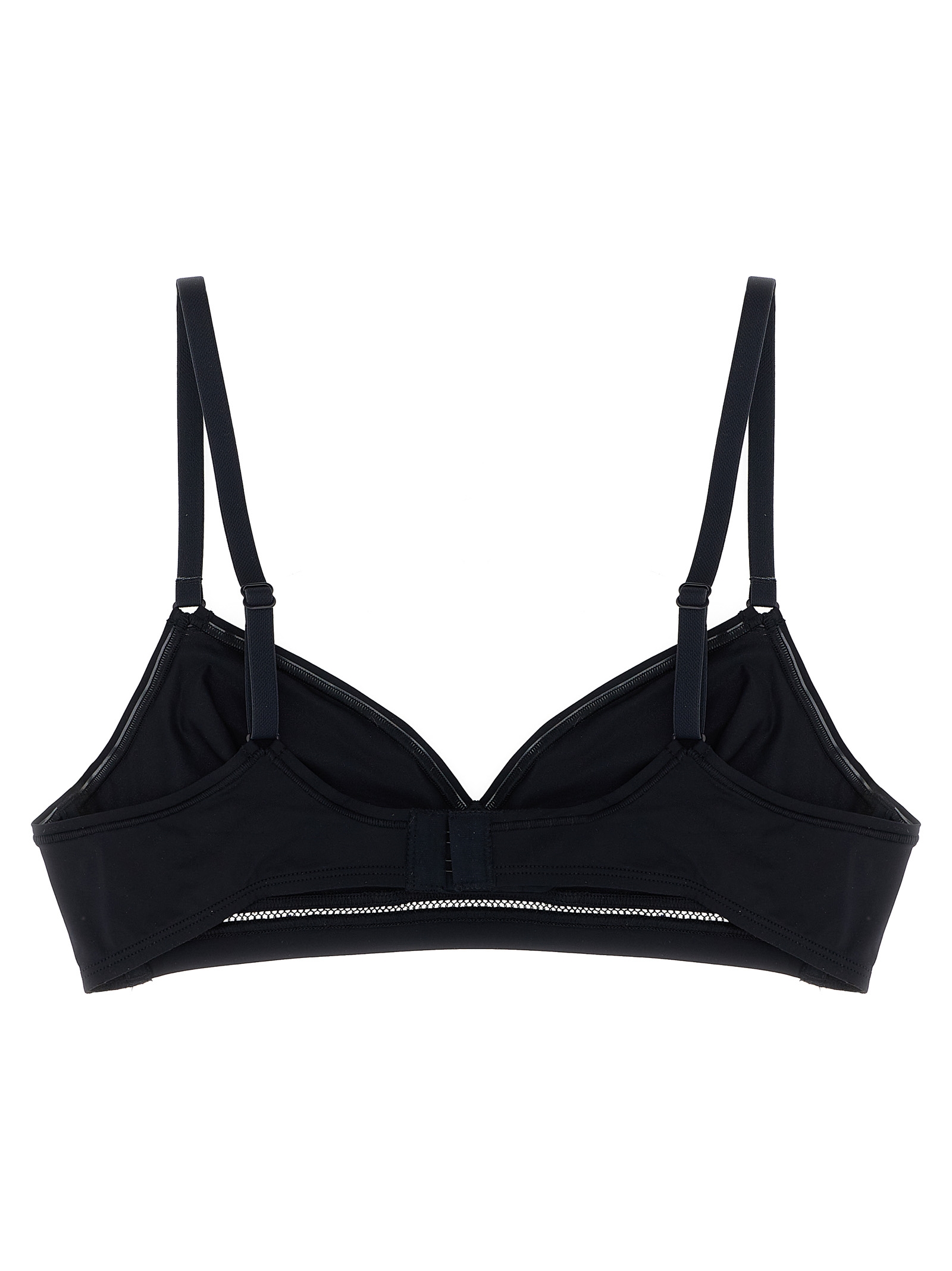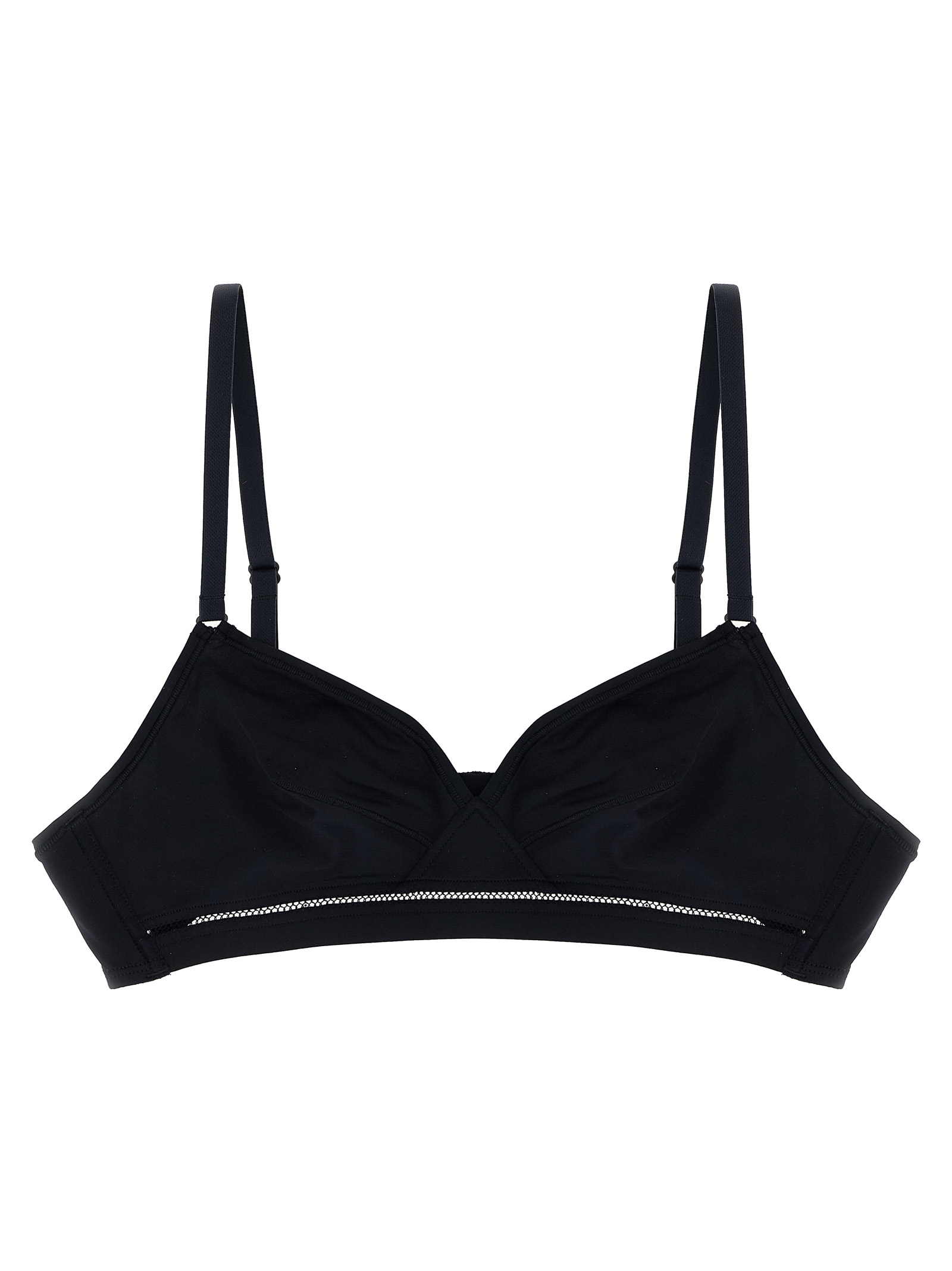 ‘Lydia Soyeuse’ second skin effect jersey bra with Vous-et-Moi stitch details, triangle style with side underwires, straight back structure with pleats, adjustable shoulder straps, and back hook closure.