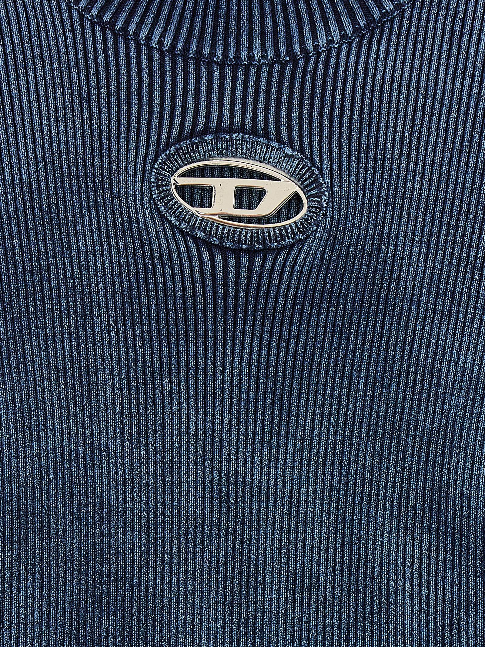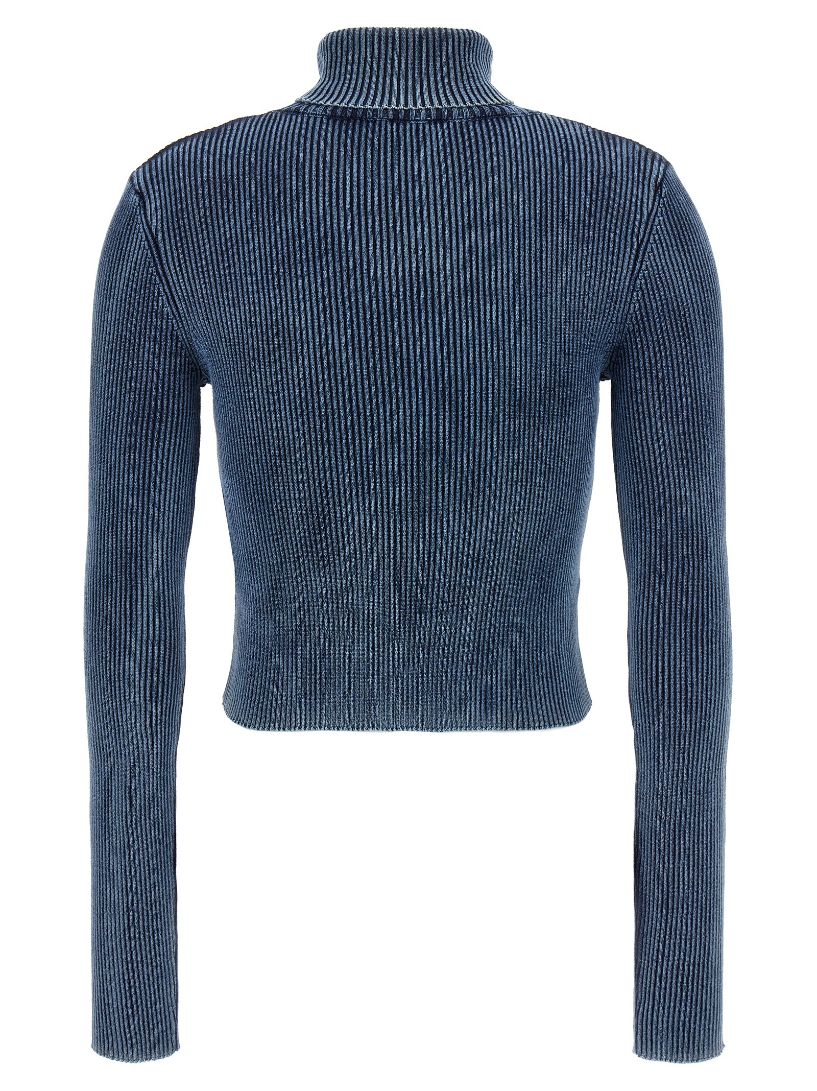 ‘M-Anchor-A-Tn’ ribbed cotton sweater with front metal buckle, high neck, long sleeves.