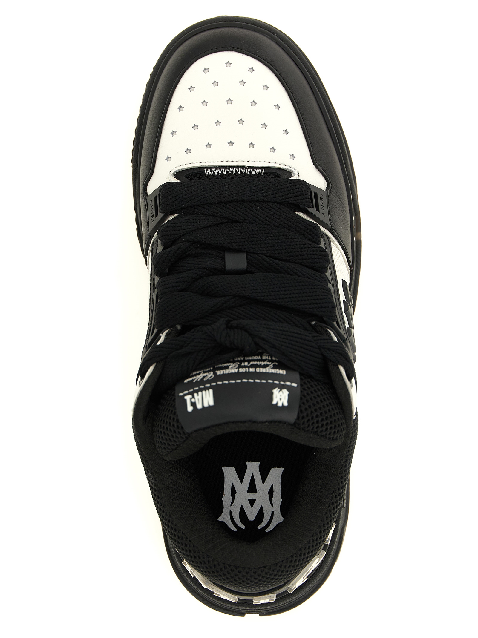 ‘MA Patch MA-1’ leather and mesh sneakers with contrast details, perforated toe, padded collar and tongue, 3D plastic ‘MA’ logo on the side, logo lettering patch on the heel, lace-up closure, oversized rubber sole.