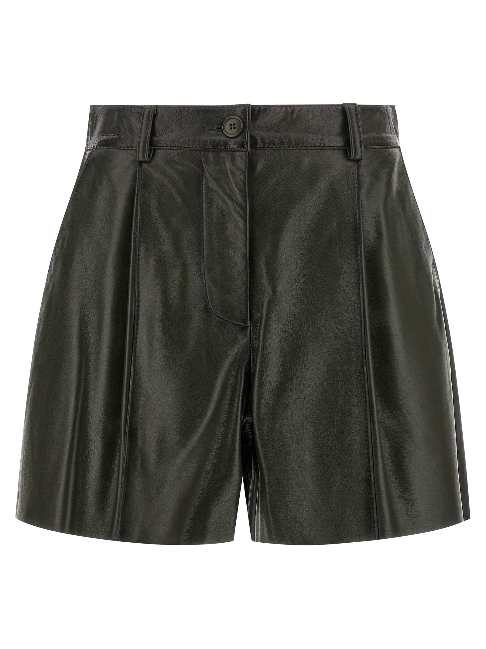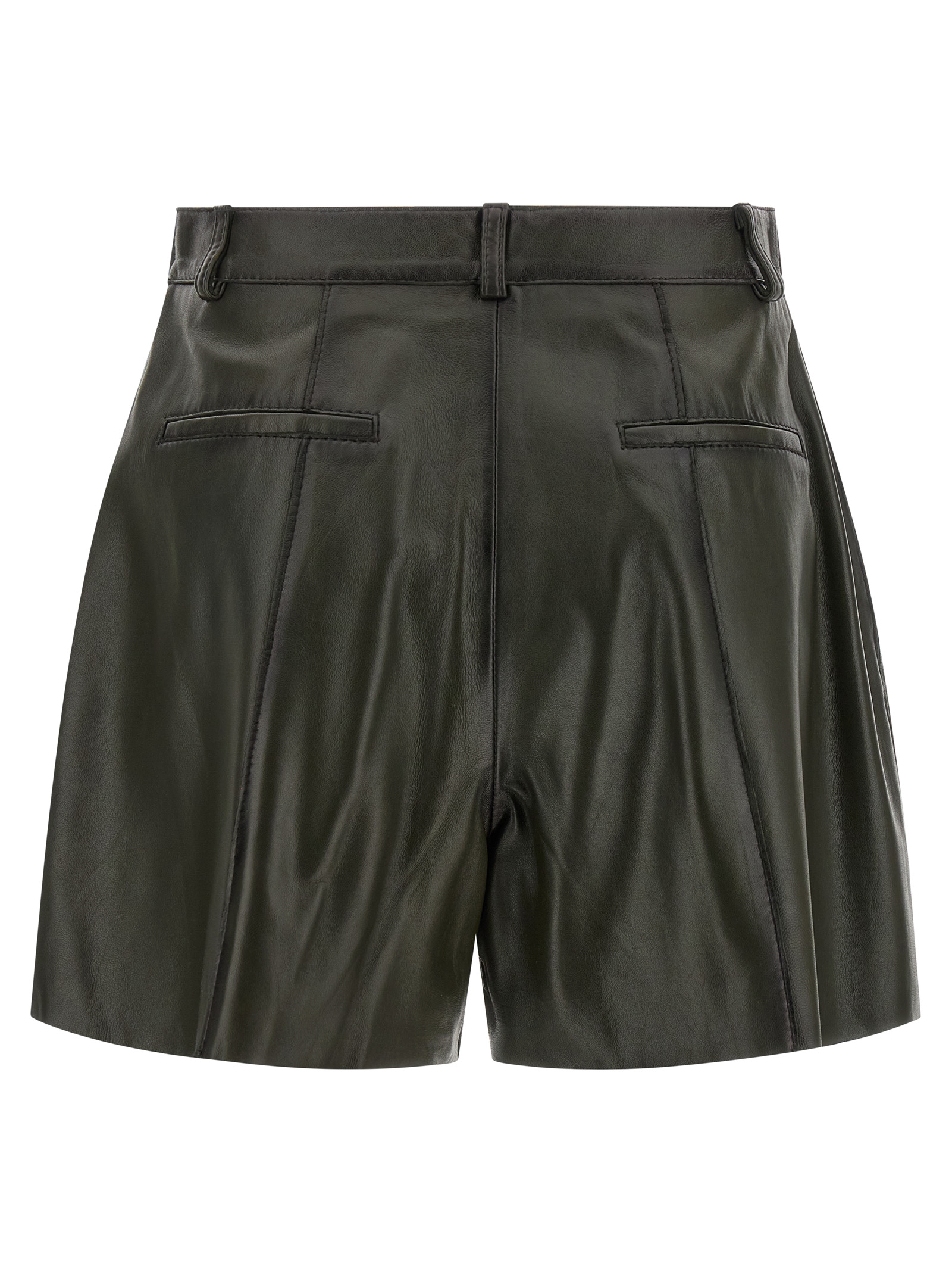 ‘Maciock25W’ leather shorts, front clamp and stitching, zip and button closure, pockets, lining.