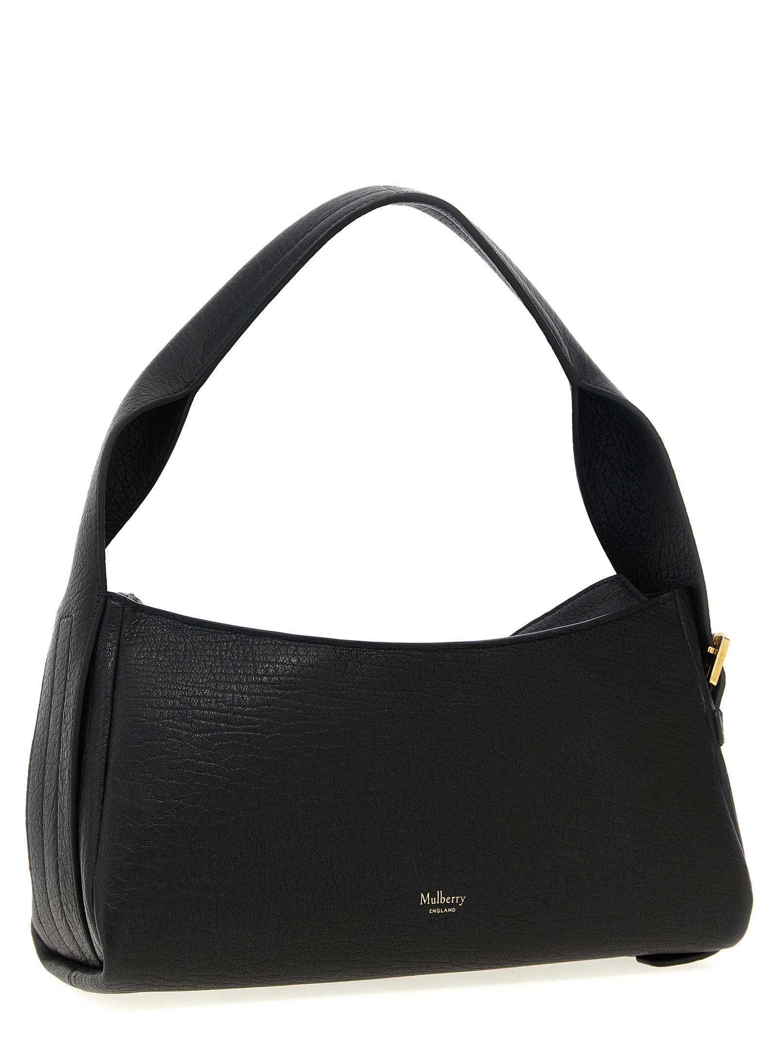 Maggie’ grained leather shoulder bag with adjustable handle, top zip closure, double front pocket, front embossed logo at the back.