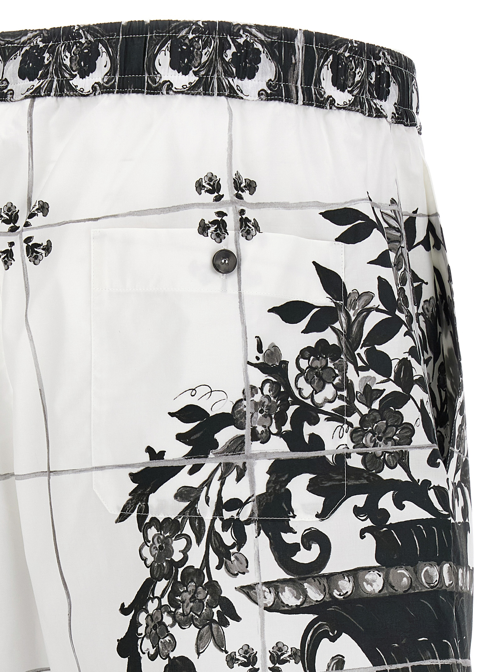 ‘Maiolica’ print cotton poplin bermuda shorts, adjustable drawstring elastic waistband, trompe l’oeil flap, pockets, slits on the leg bottom.