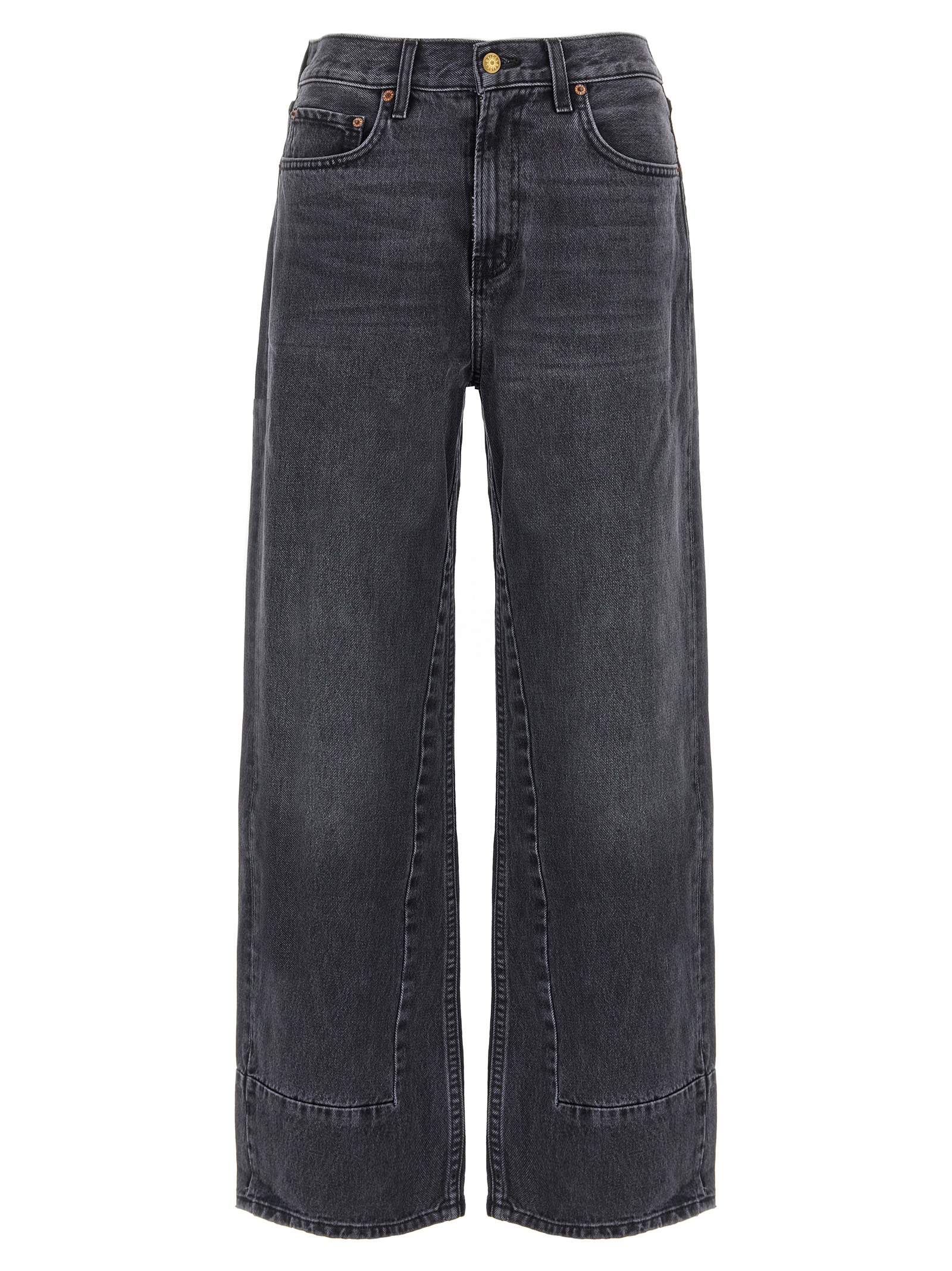 Stonewashed cotton denim denim ‘Marcel Culotte’ jeans, mid-rise style with paneled construction, wide straight leg, front button closure, five pockets, back salpa.ns. Due to the unique characteristics of vintage garments, the garment may have imperfections that are not to be considered defects, the shade of denim may vary slightly.