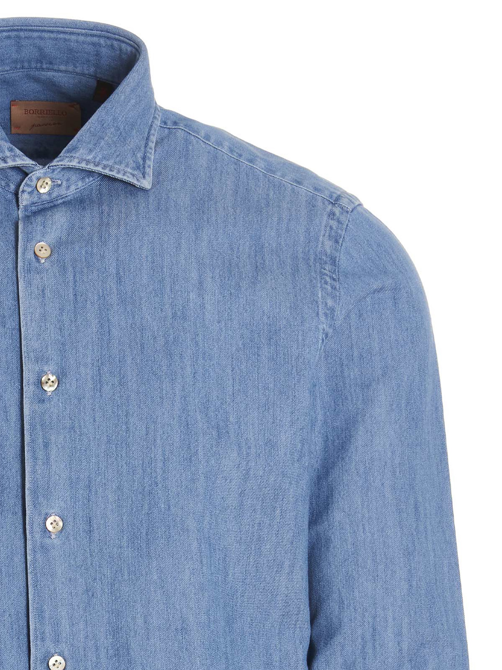 Marechiaro’ denim-effect cotton shirt with button closure, long cuffed sleeves.