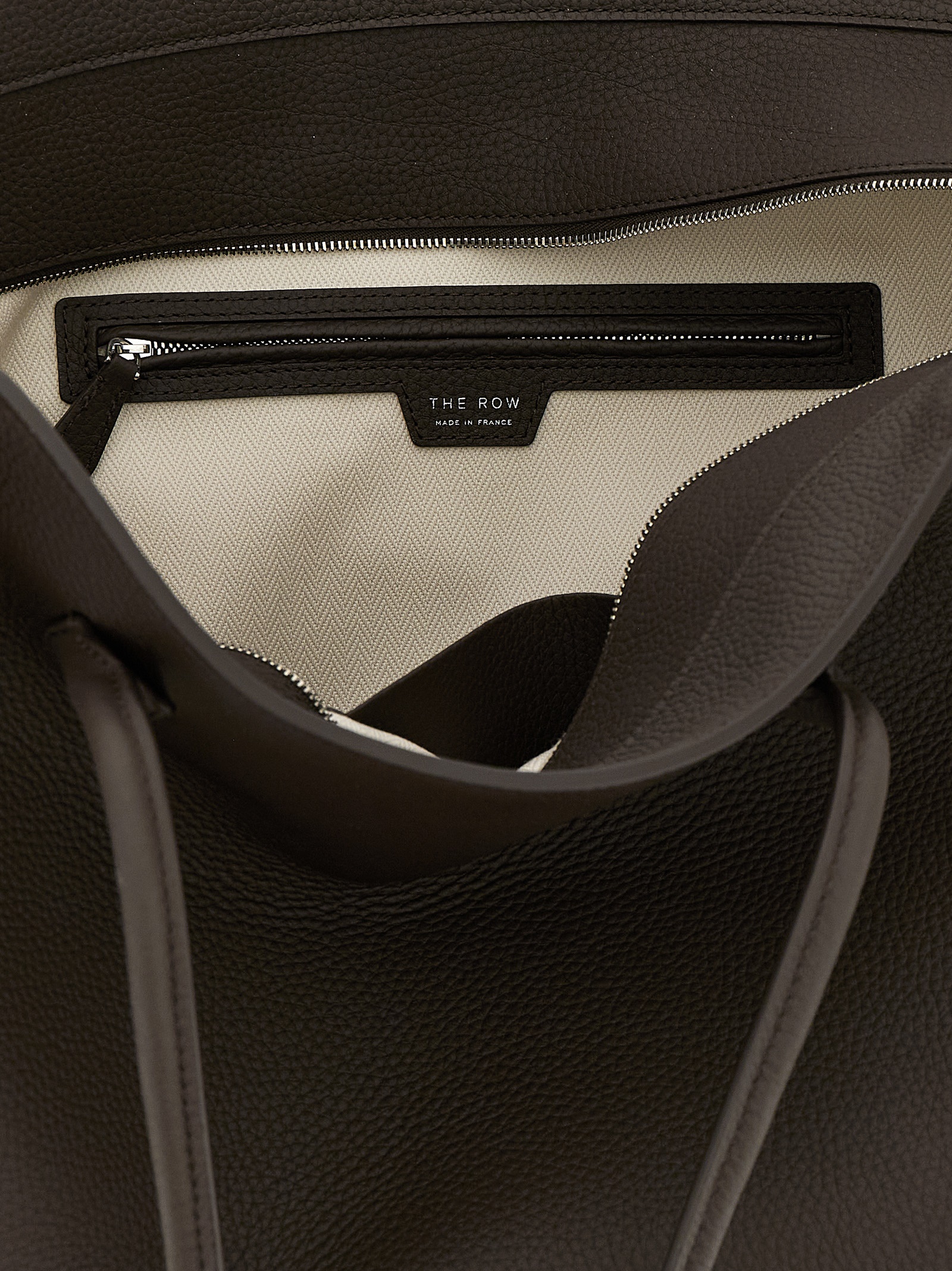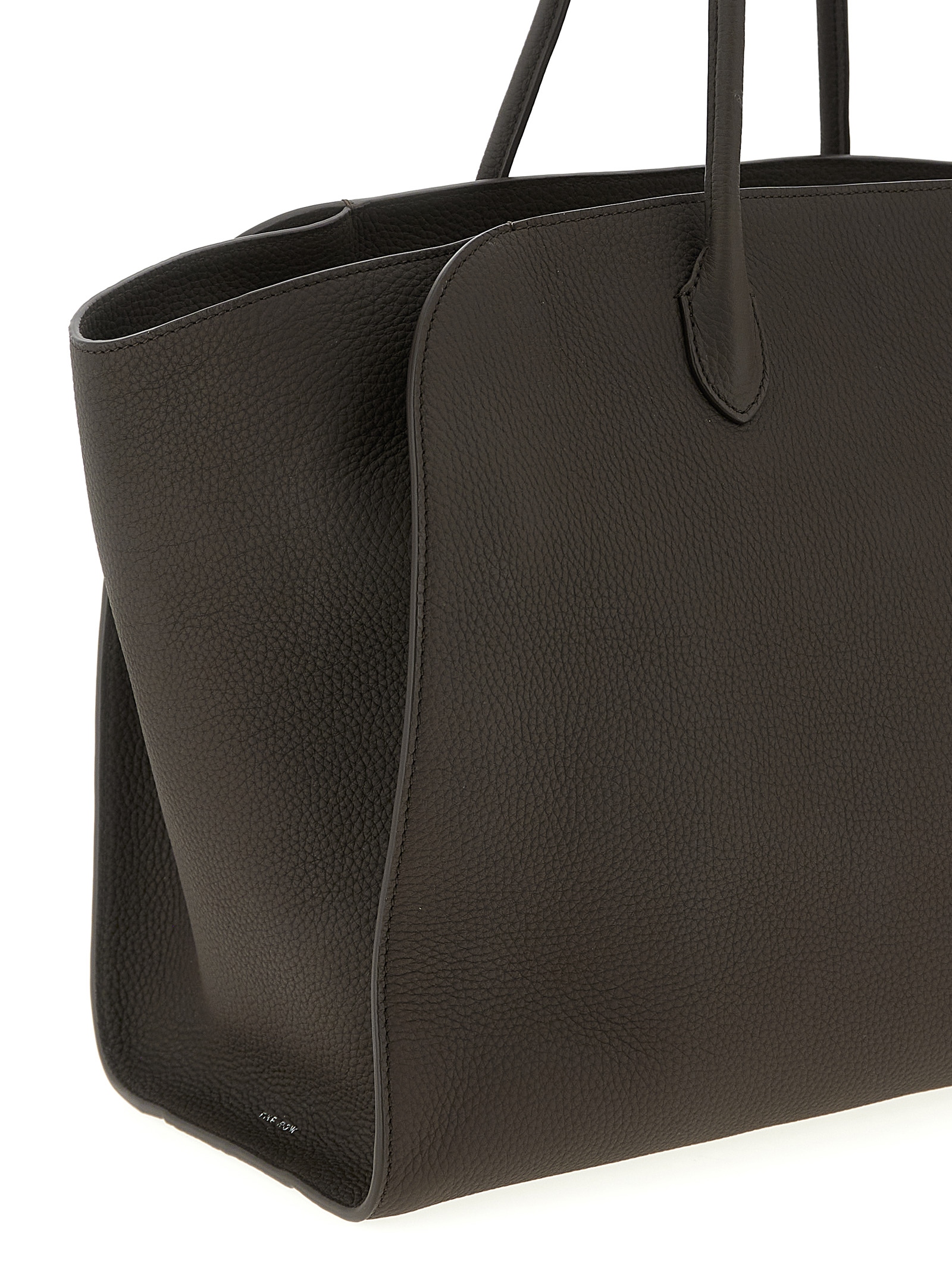 ‘Marlo 17’ hammered leather handbag, double fixed tubular handle, zip closure.