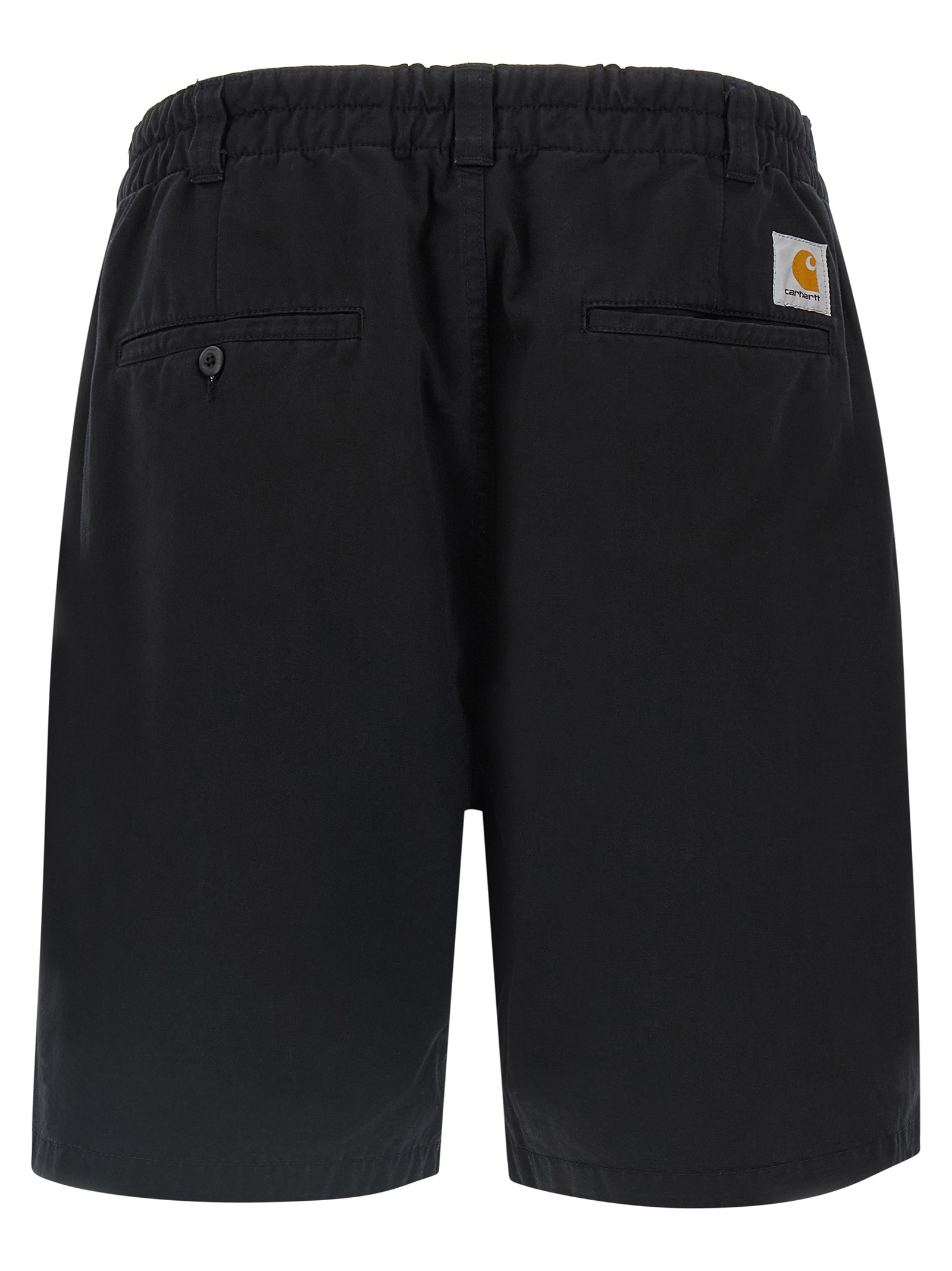 ‘Marv’ bermuda shorts in Lenexa medium weight cotton twill with front pleats, wide leg, mid waist with back elastic, front zip and button closure, pockets, back logo patch.