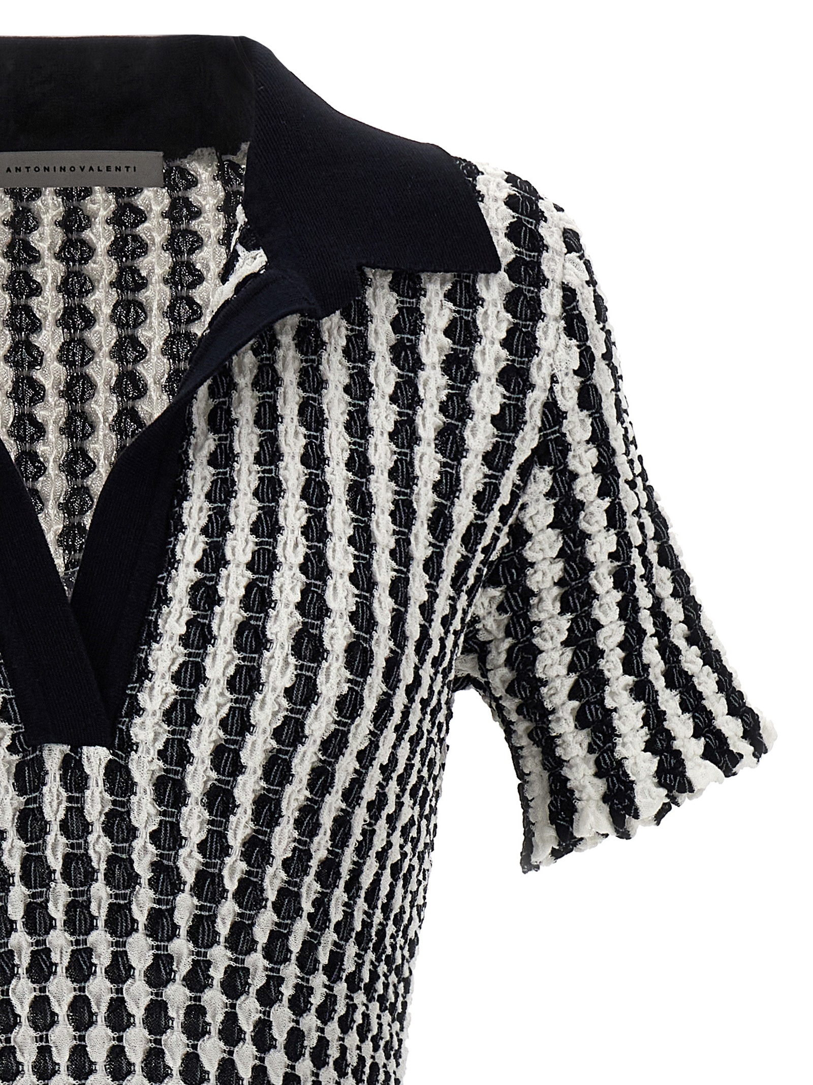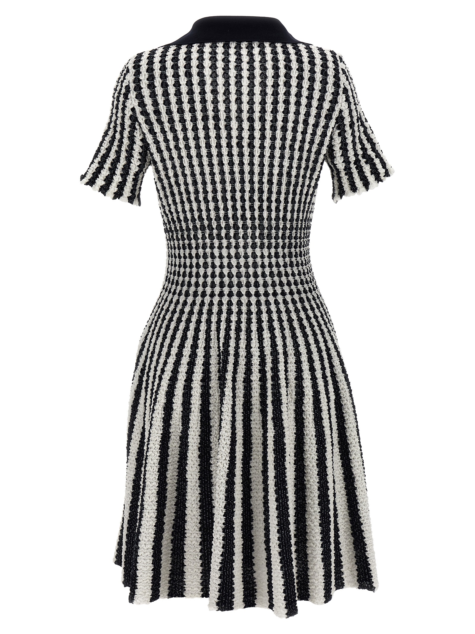 ‘Marylin’ short and screwed dress in cotton knit with short sleeves, V-neck and polo collar.