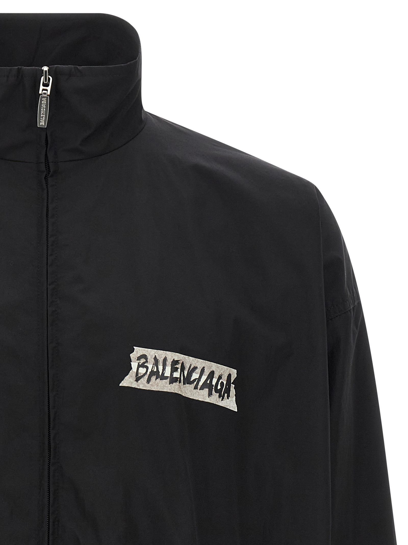 Tech cotton poplin sweatshirt, mesh lining, ‘Masking Tape’ print on the front and back, high neck, front zip closure, pockets, long sleeves with elastic cuffs and dropped shoulders, elastic hem.