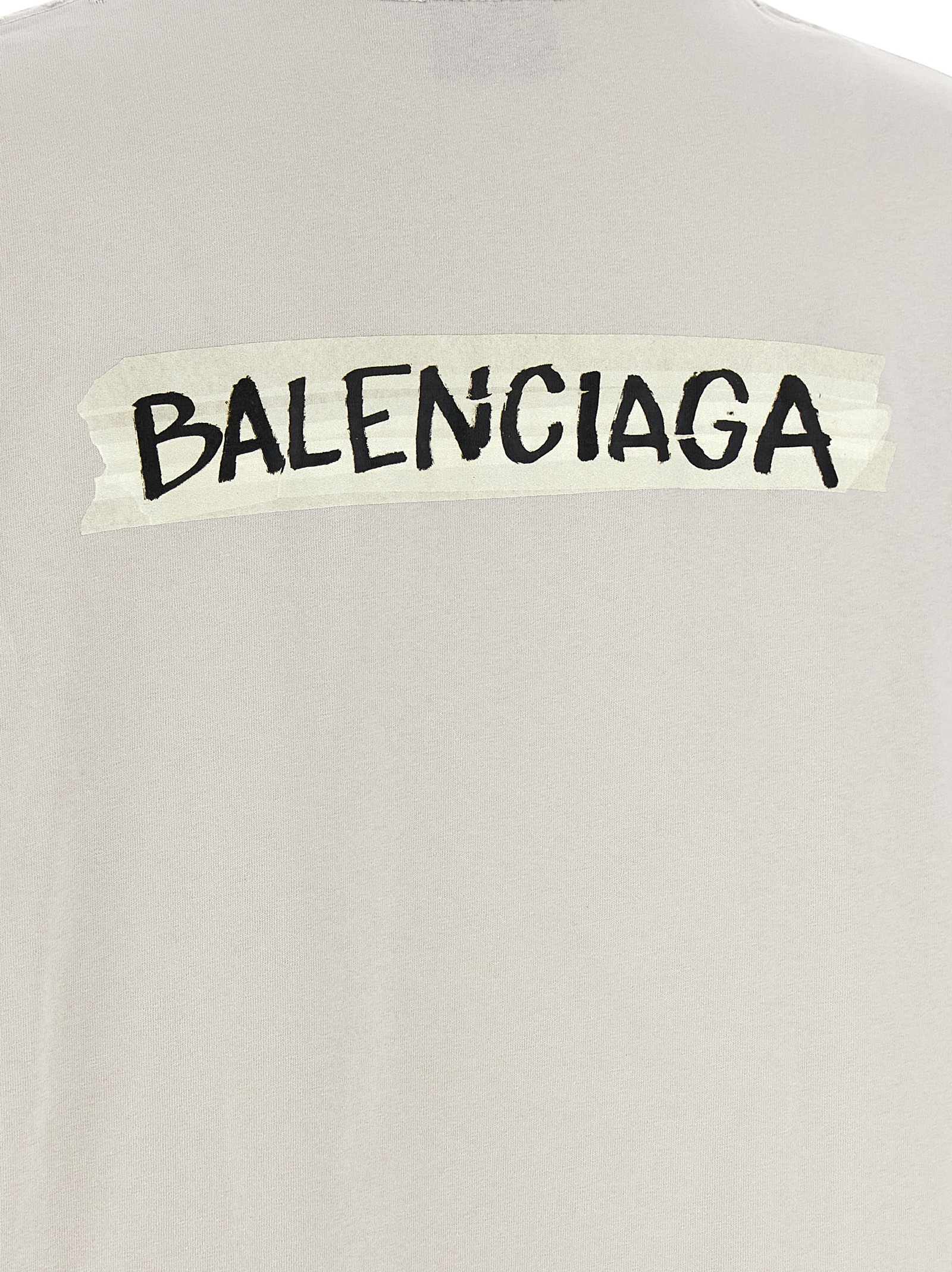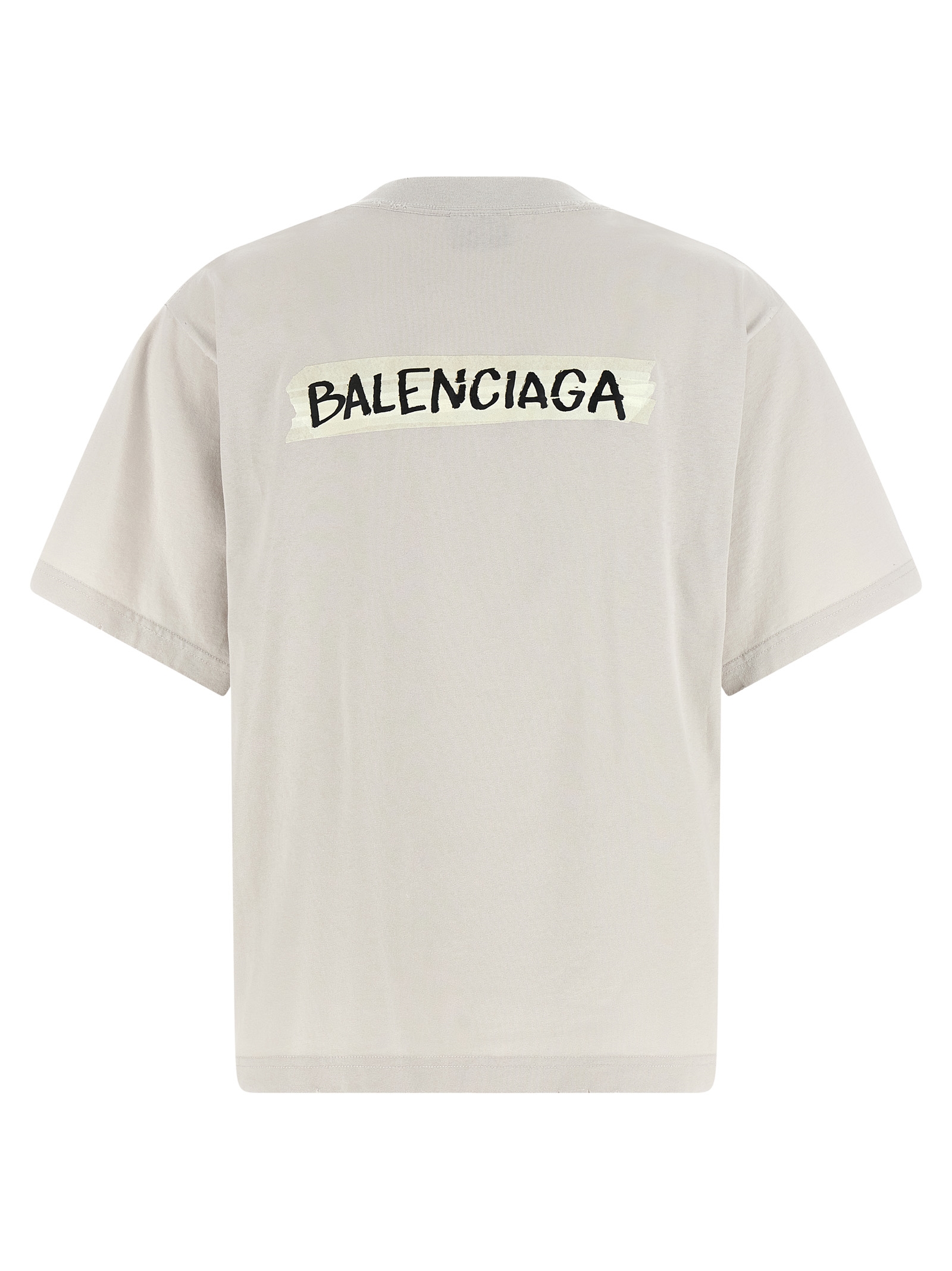 Washed and washed dry jersey T-shirt, ‘Masking Tape’ print on the front and back, crew neck, short sleeves with dropped shoulders.