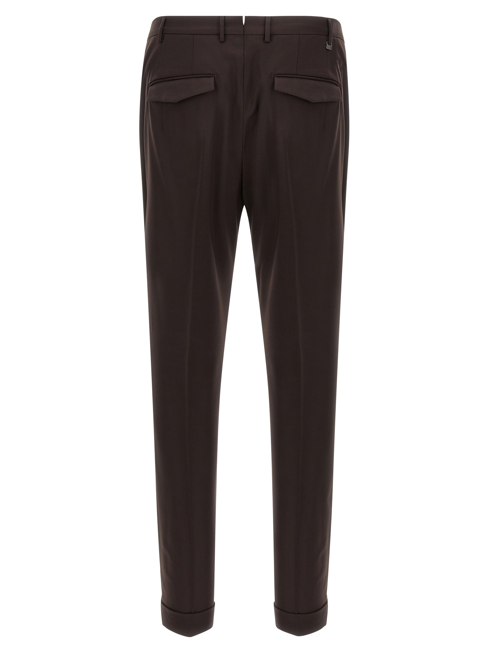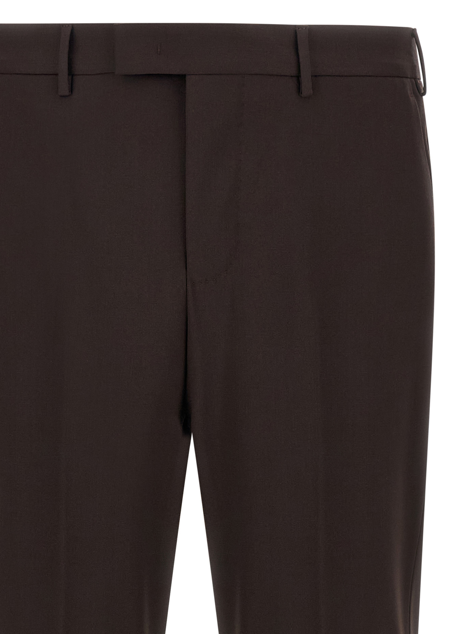 ‘Master’ pants in stretch 350gr batavia wool, hook and button zip closure, pockets, leg with central crease.