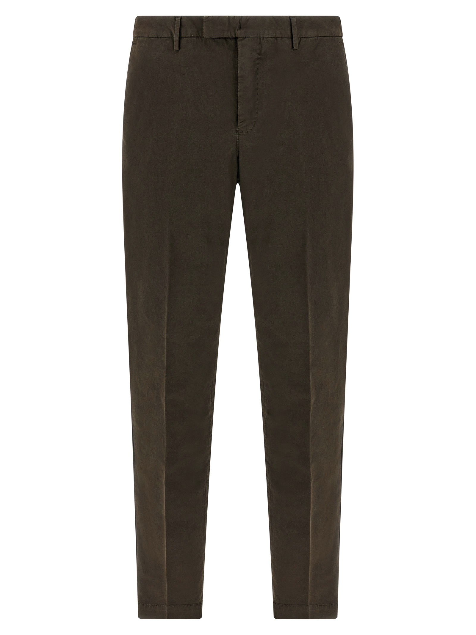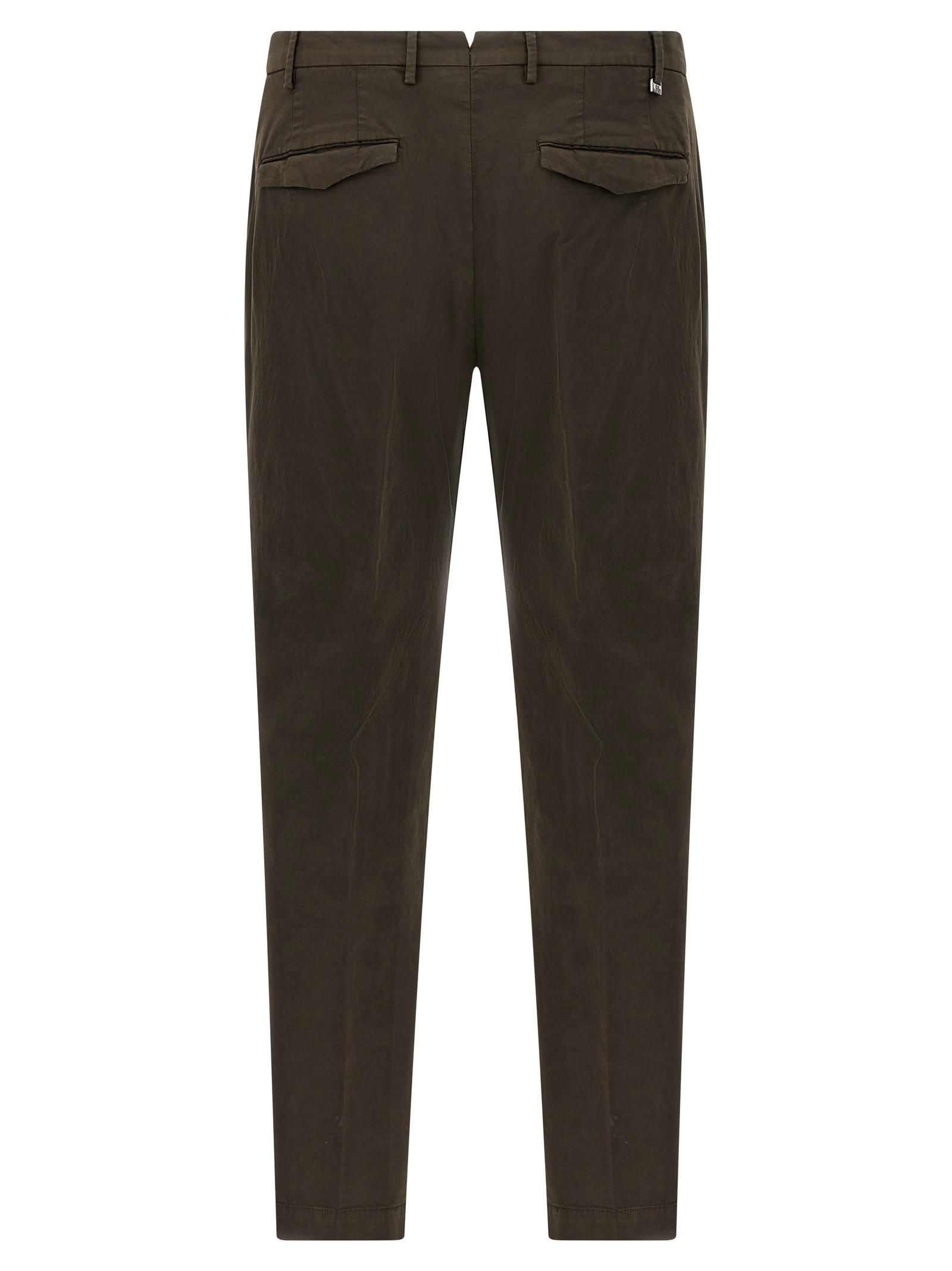 ‘Master’ stretch cotton pants, hook and button zip closure, straight leg, stretched crease, pockets.