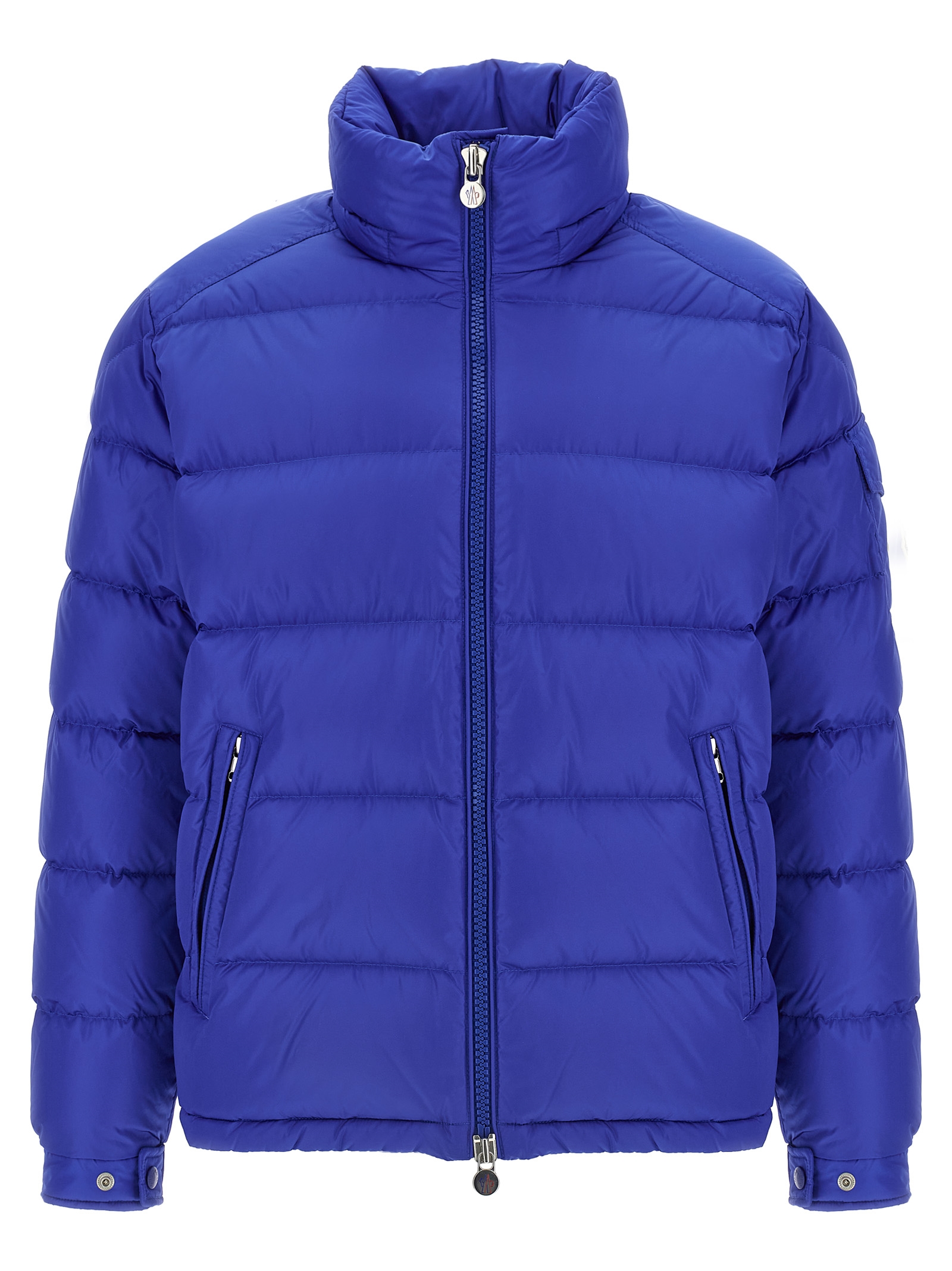 ‘Maya’ padded nylon down jacket, front zip closure, removable hood, side pocket with logo patch, long sleeves, adjustable elastic cuffs with button.