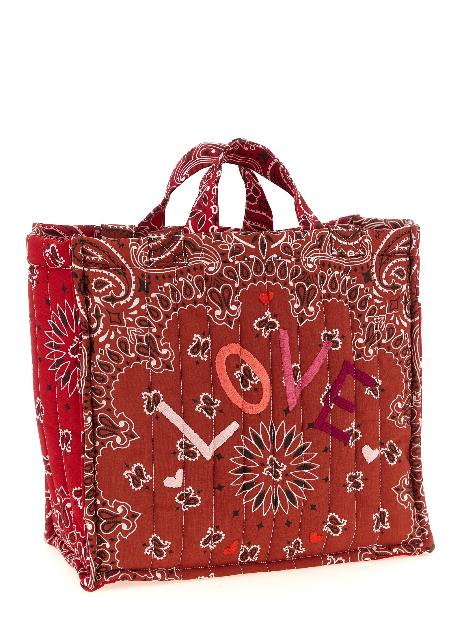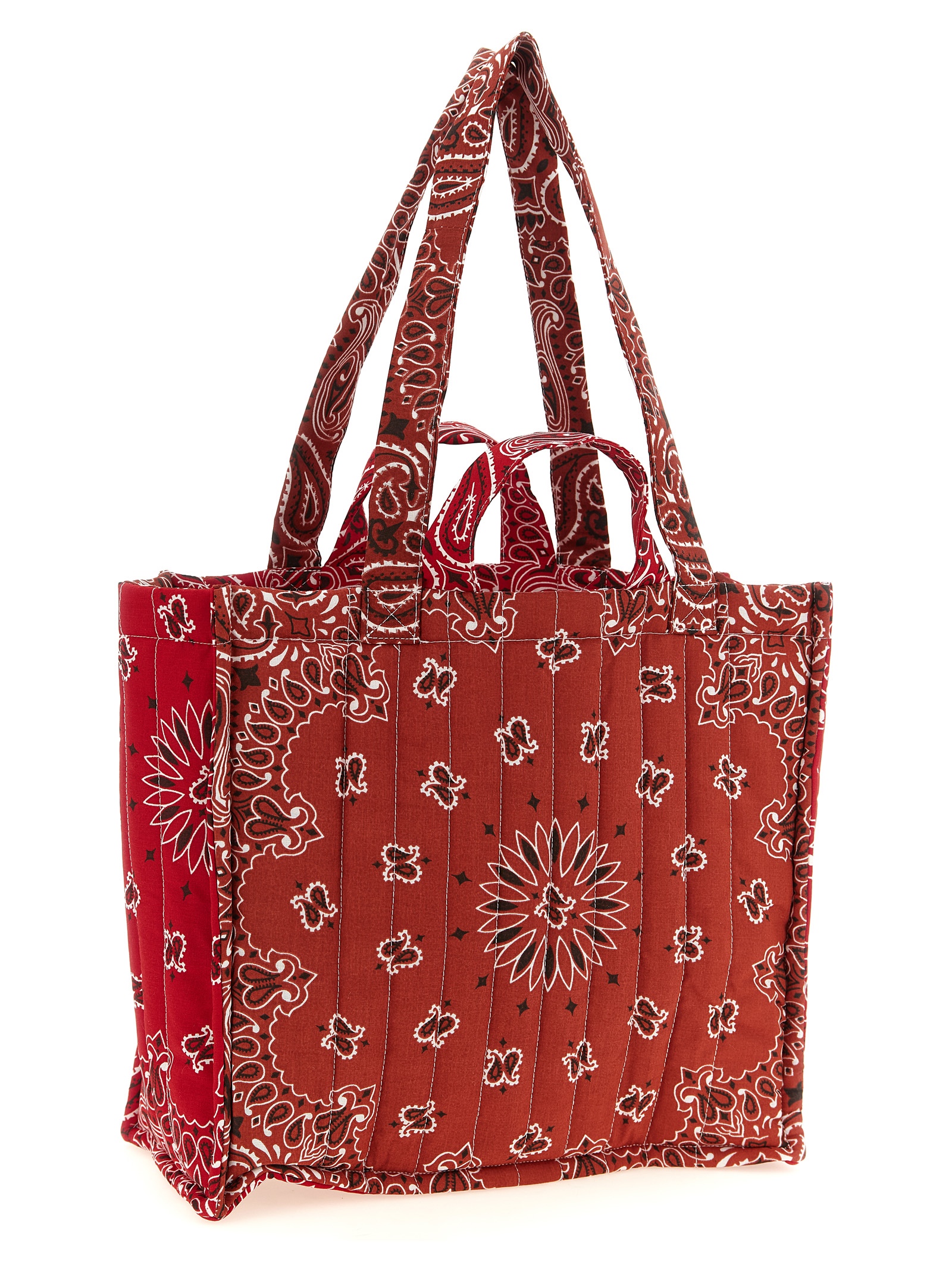 Medium ‘Cabas’ quilted and padded cotton shopping bag with ‘Bandana’ print, front embroidery, short hand handle, long shoulder handle.