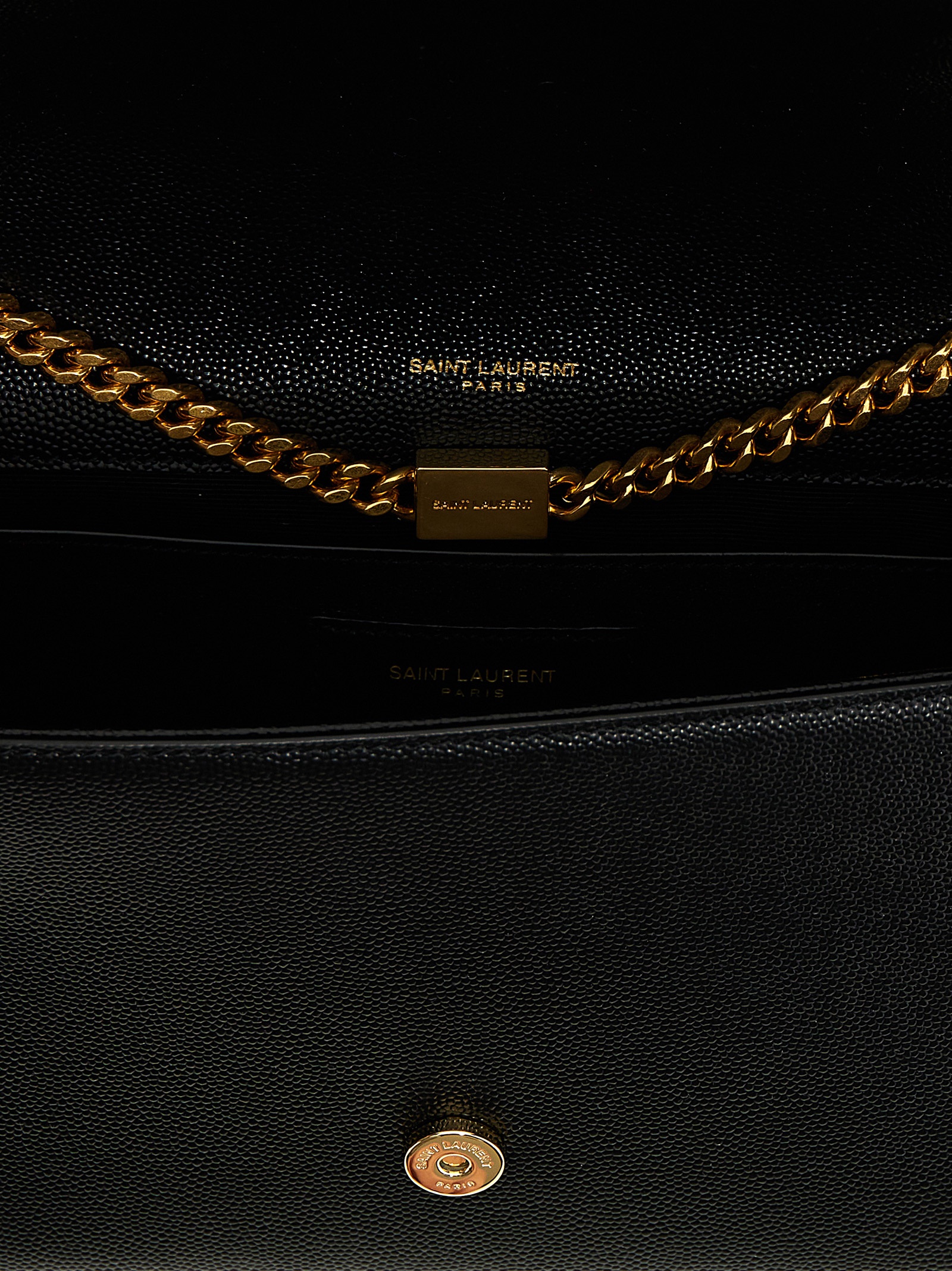 Medium ‘Kate’ shoulder bag in grain de poudre leather, magnetic closure, sliding chain shoulder strap.
