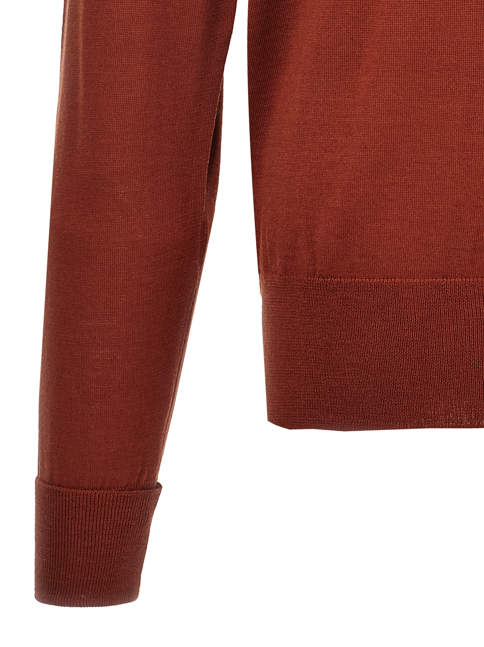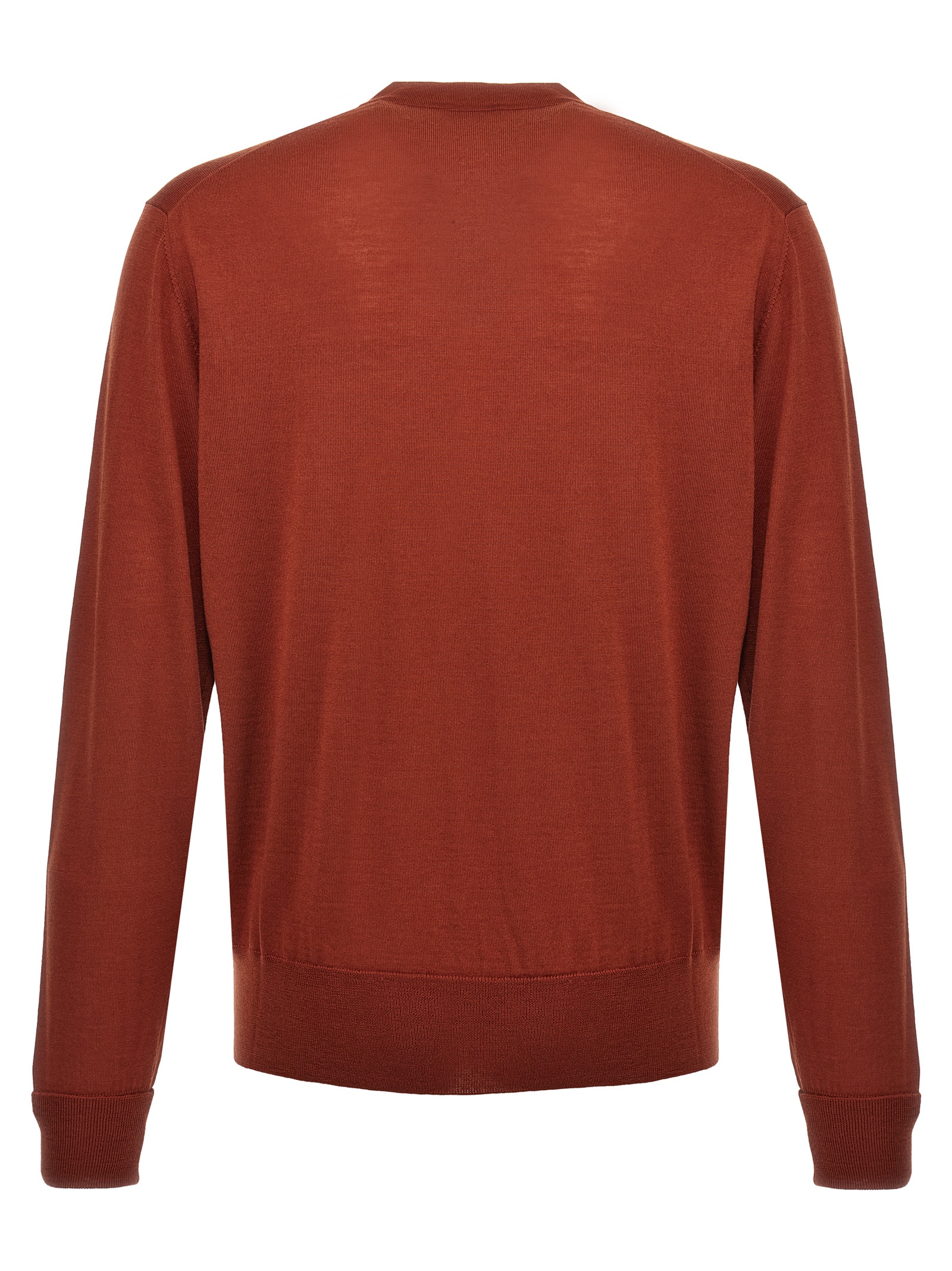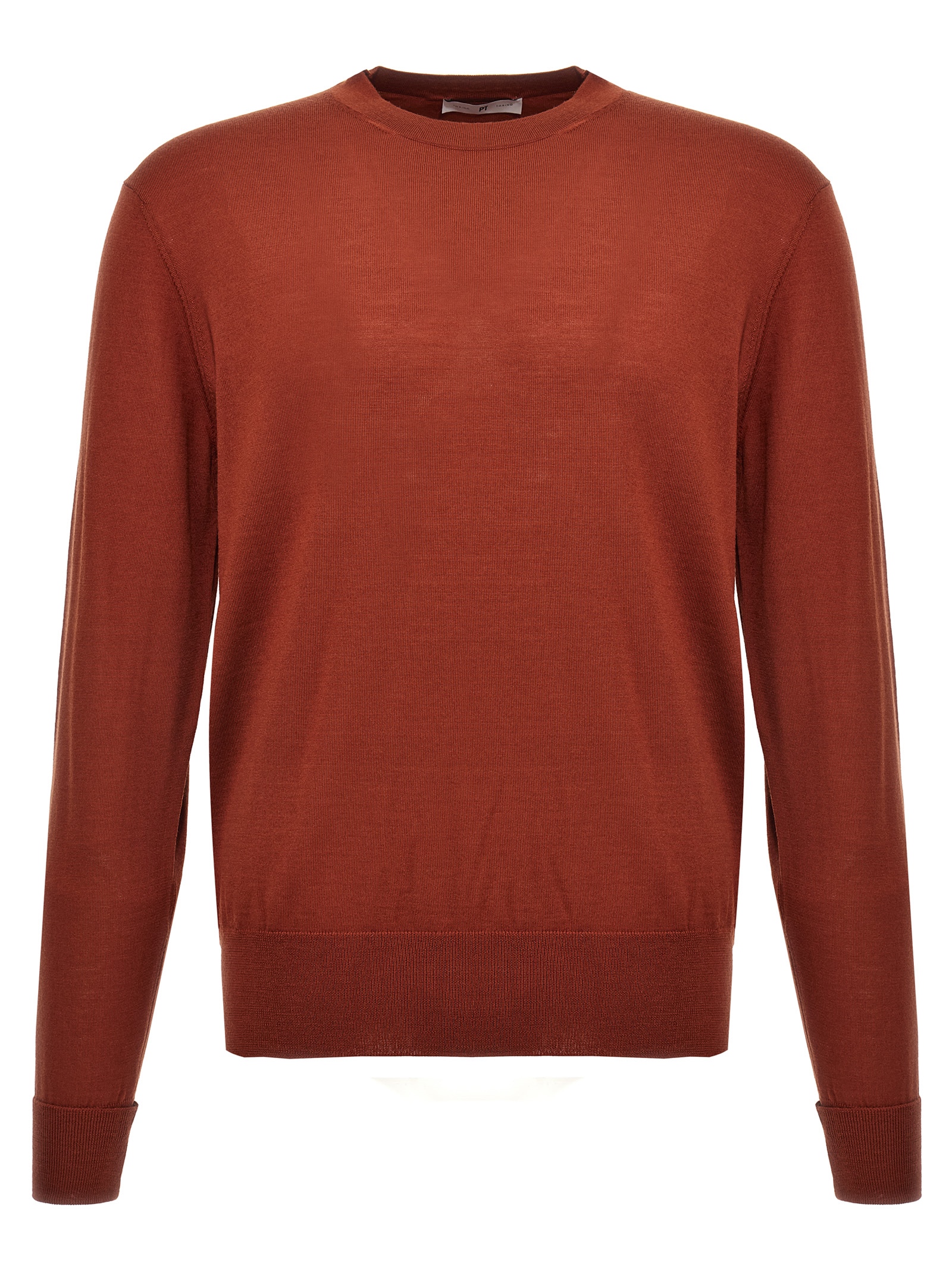 Merino wool crew neck sweater with long sleeves with turned-up cuffs.