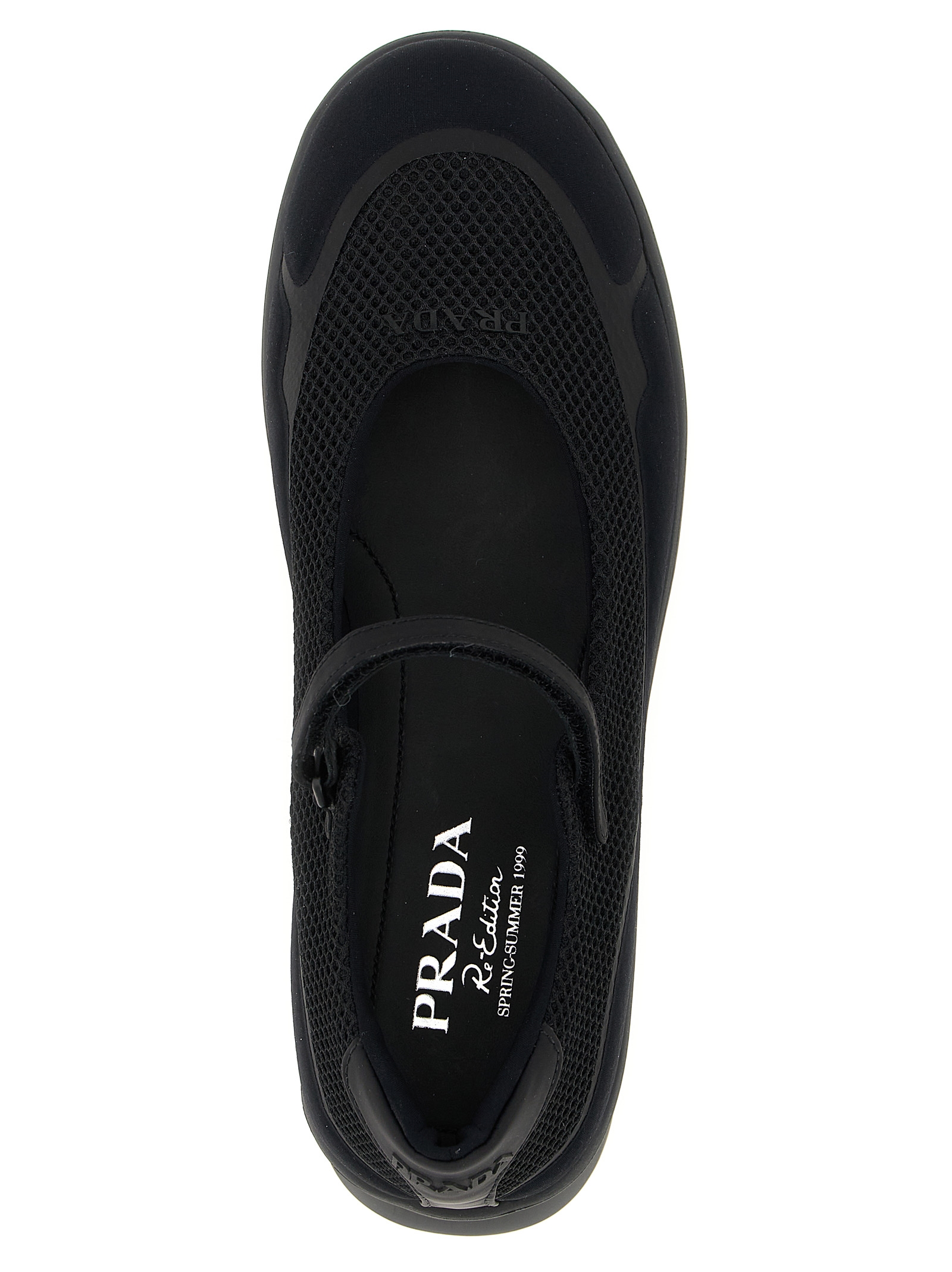 Openwork mesh ballet flats with tone-on-tone logo lettering on the front and back,