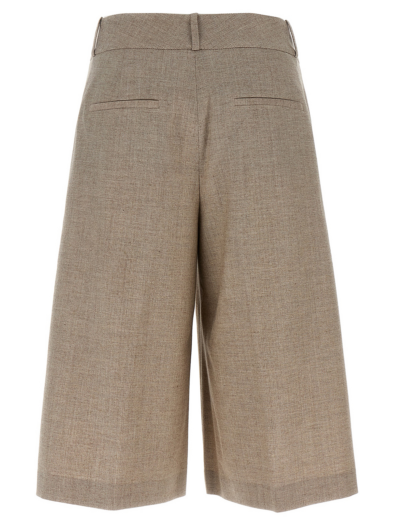Micro houndstooth pattern stretch viscose wool bermuda shorts, long below the knee model, zip hook and front button closure, pockets.