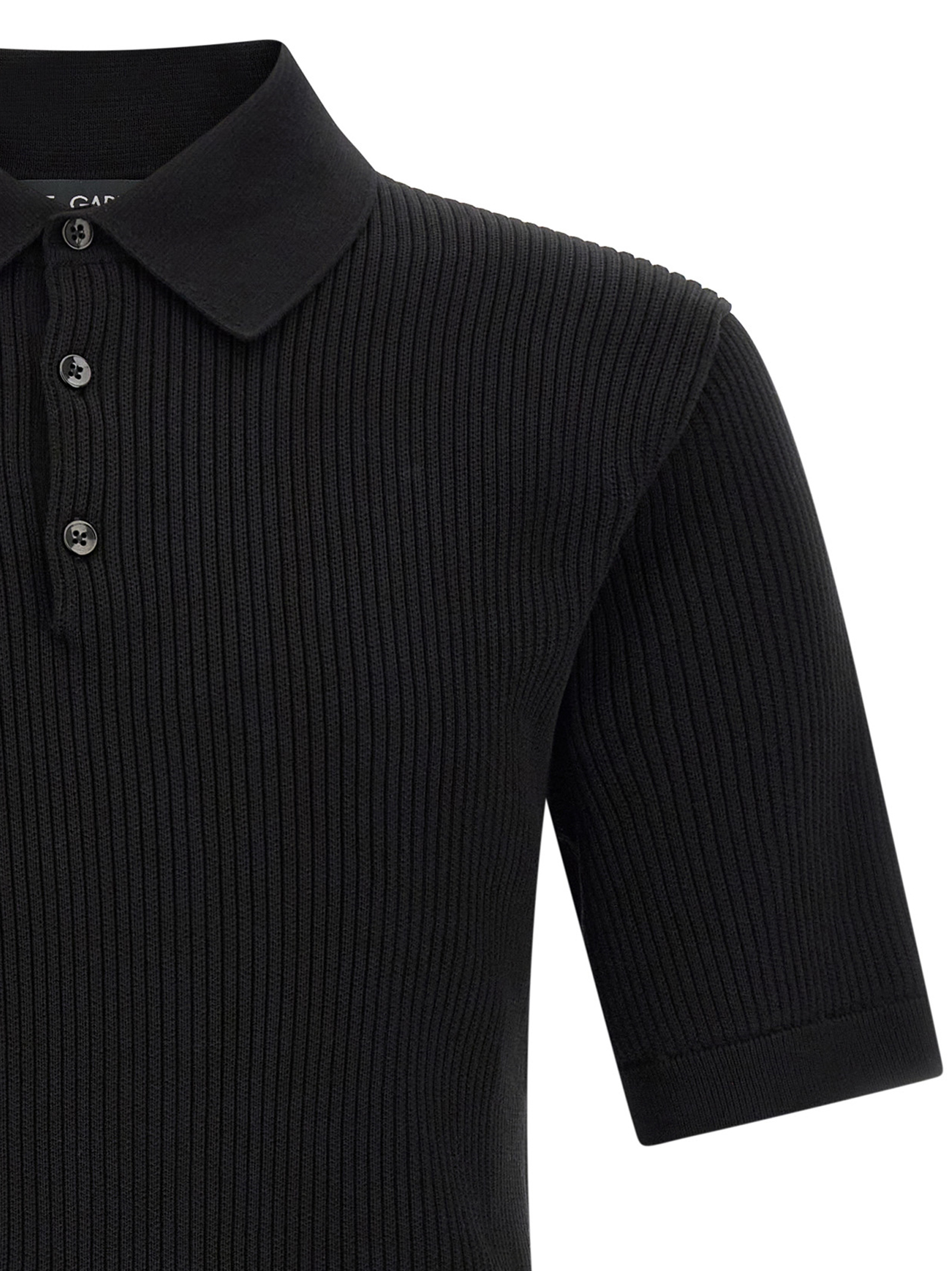 Micro-ribbed cotton polo shirt, tone-on-tone crossed ‘DG’ logo patch on the front, collar and buttons, short sleeves with cuffs, and band on the hem.