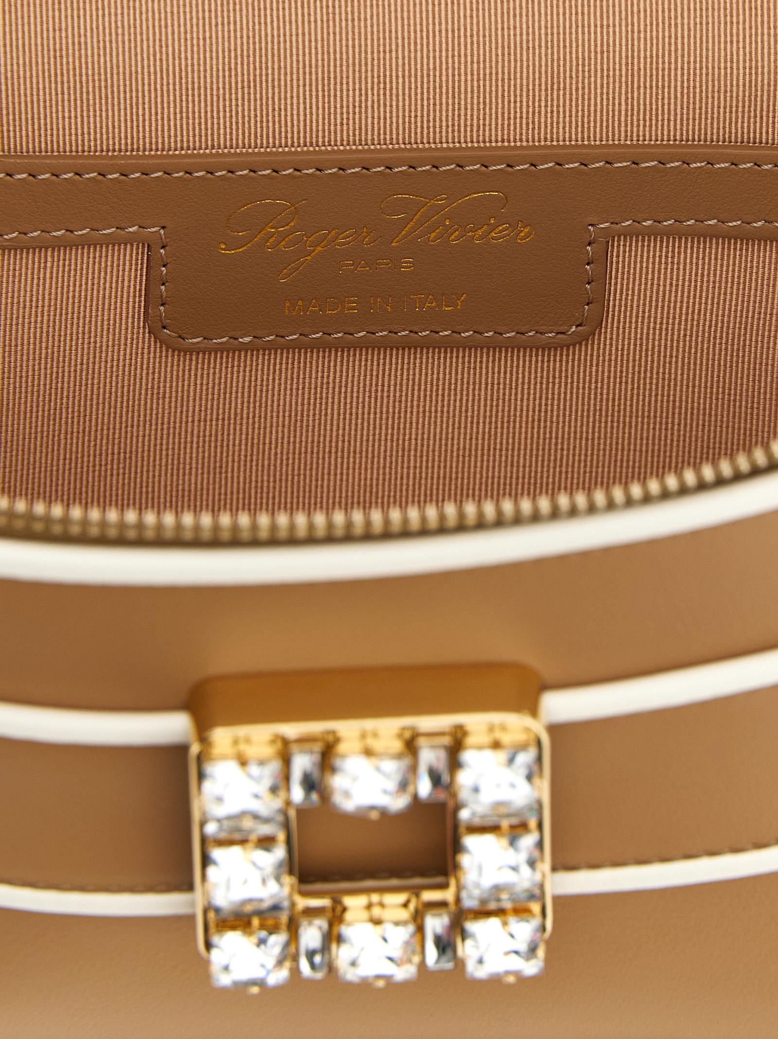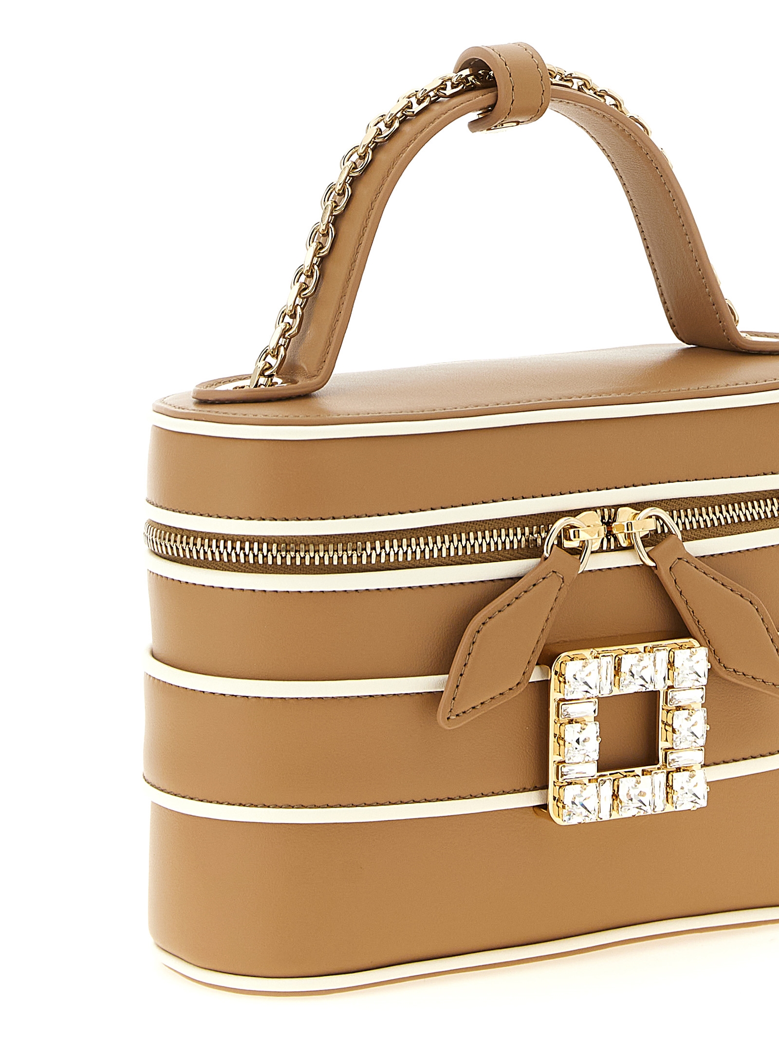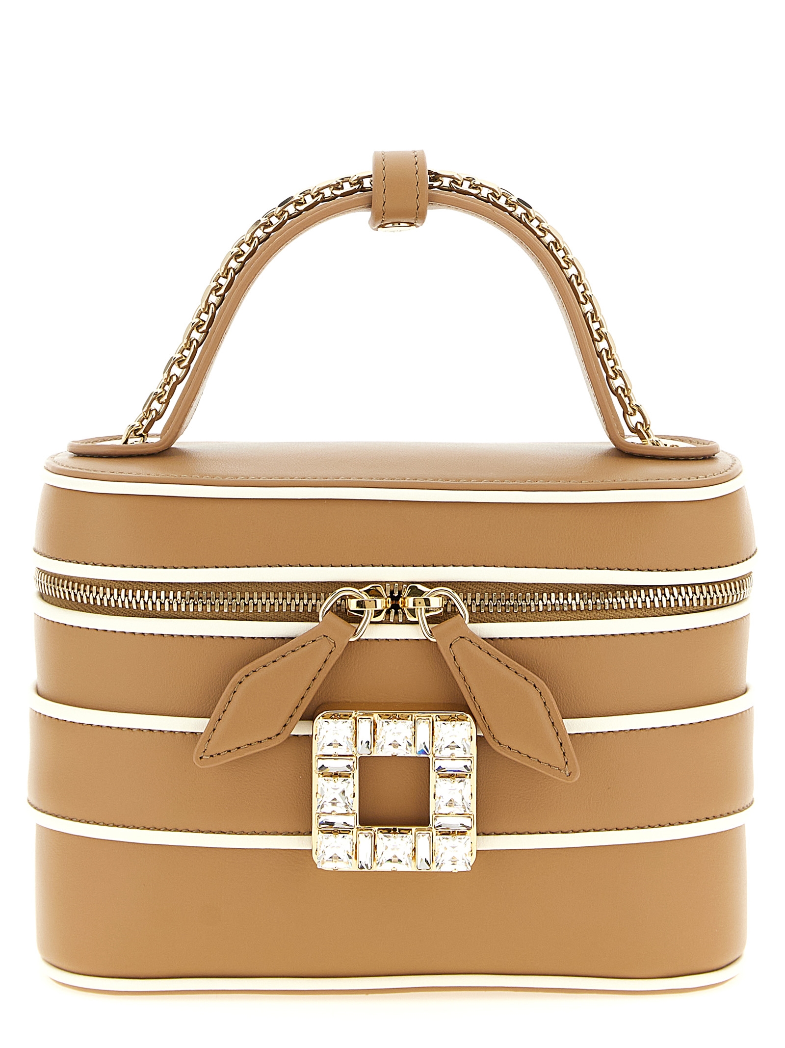 ‘Micro Vanity Très Vivier’ leather handbag with contrasting details, metal ‘Très Vivier’ buckle with front square crystals, fixed handle, zip closure, sliding chain shoulder strap, fabric lining.